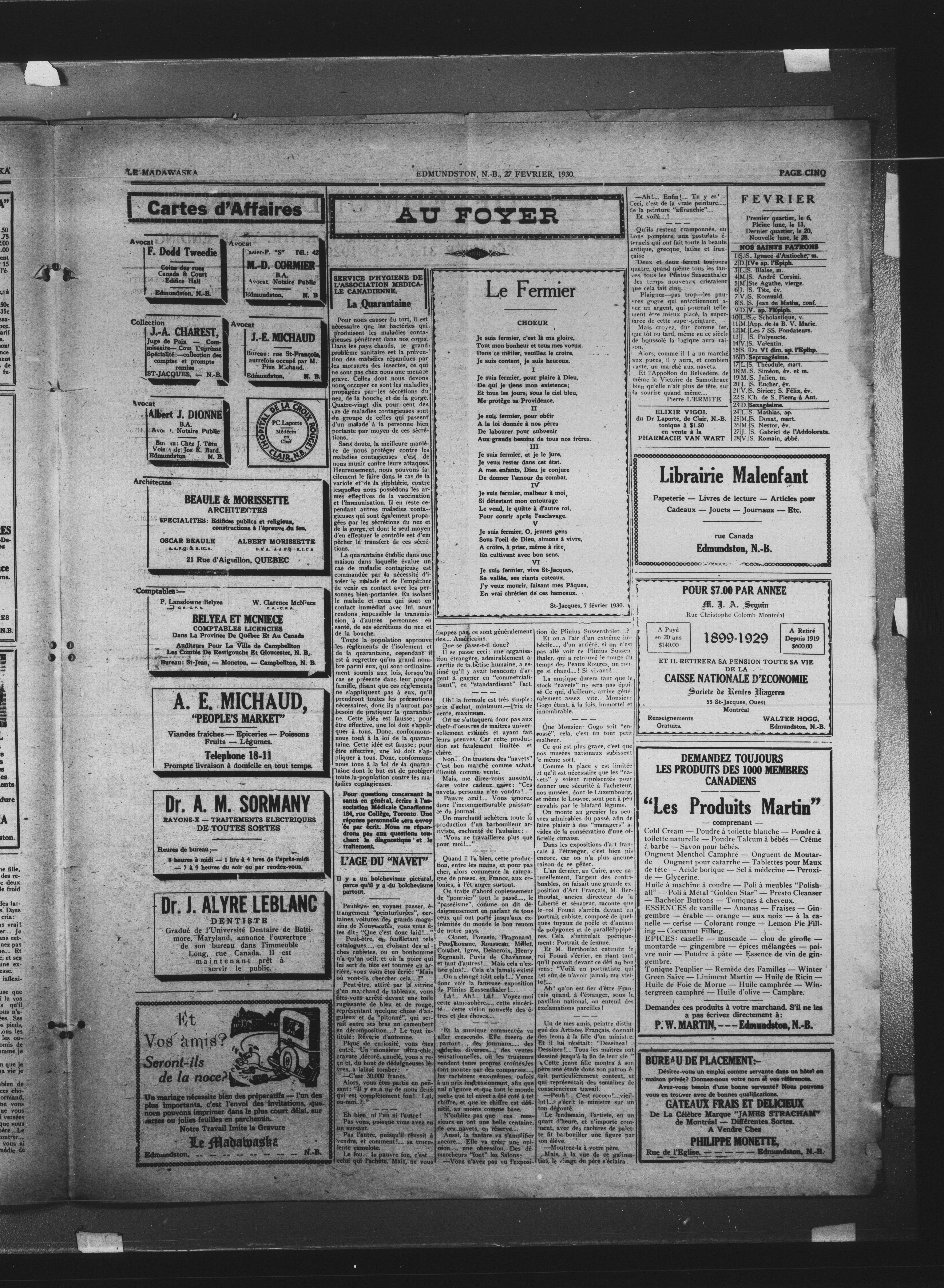 Le Madawaska : Dixseptième Année, No 9 (27 février 1930)