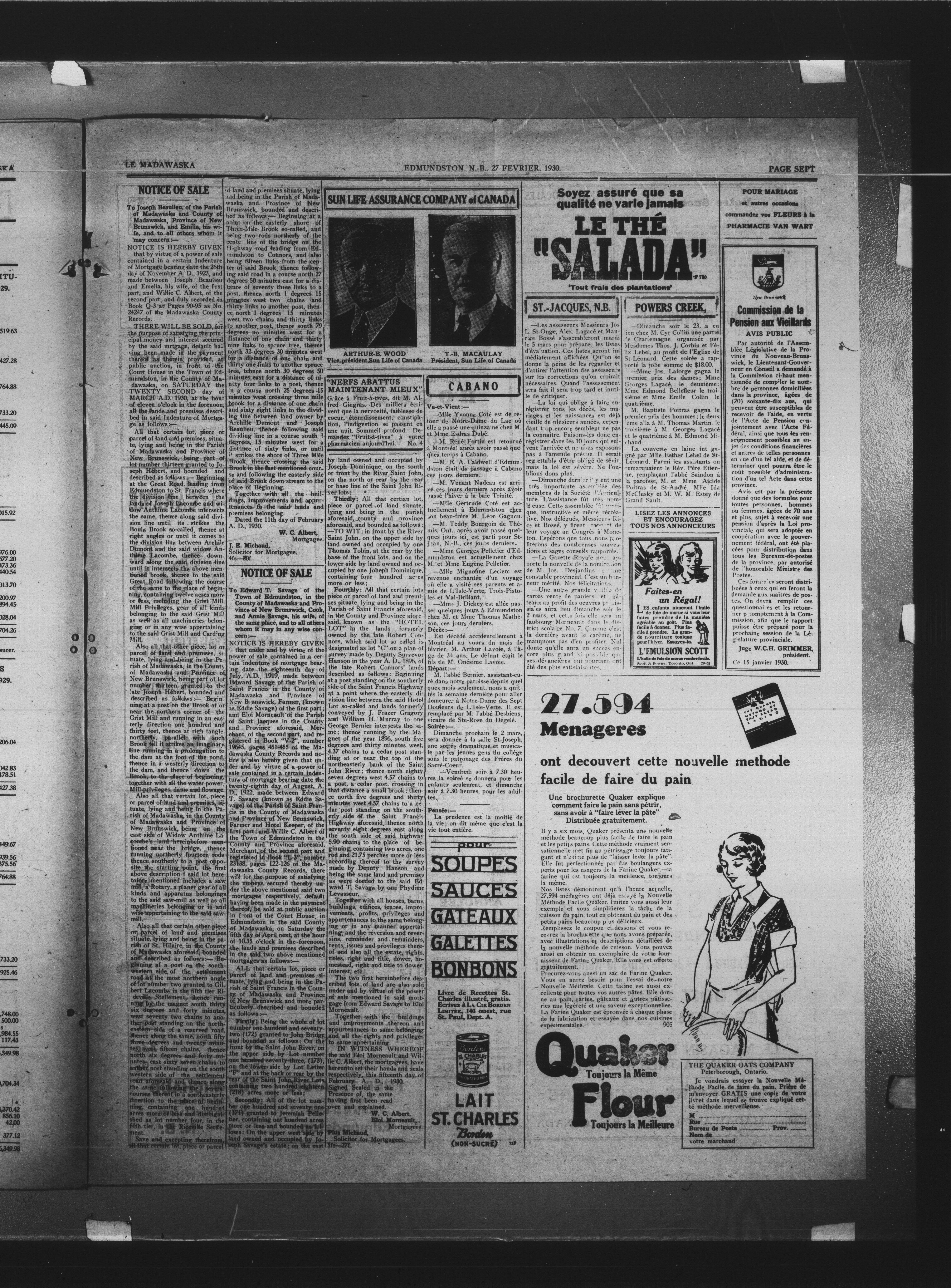 Le Madawaska : Dixseptième Année, No 9 (27 février 1930)