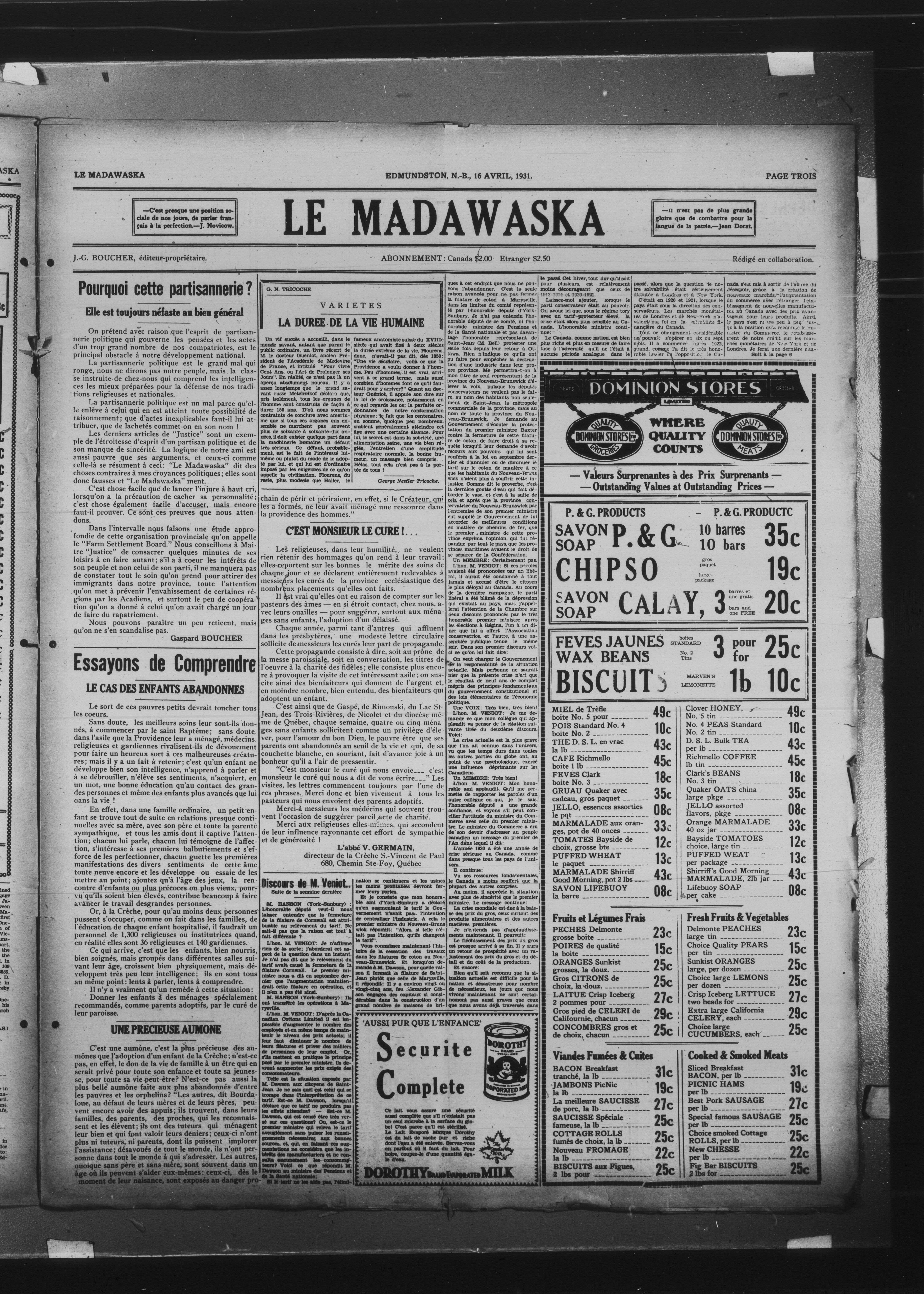 Le Madawaska : Dix-huitième Année, No 17 (16 avril 1931)