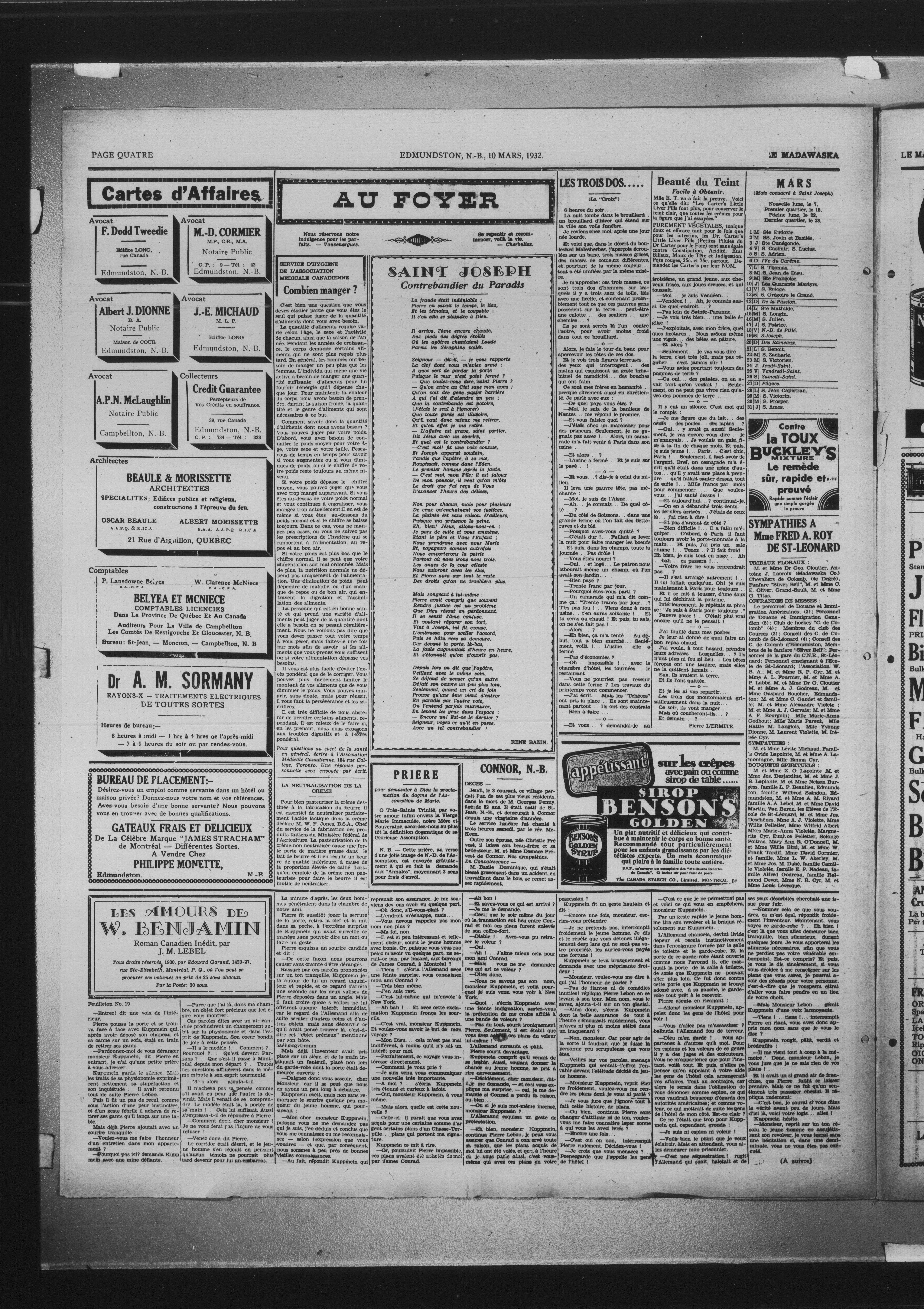 Le Madawaska : Dix-neuvième Année, No 10 (10 mars 1932)
