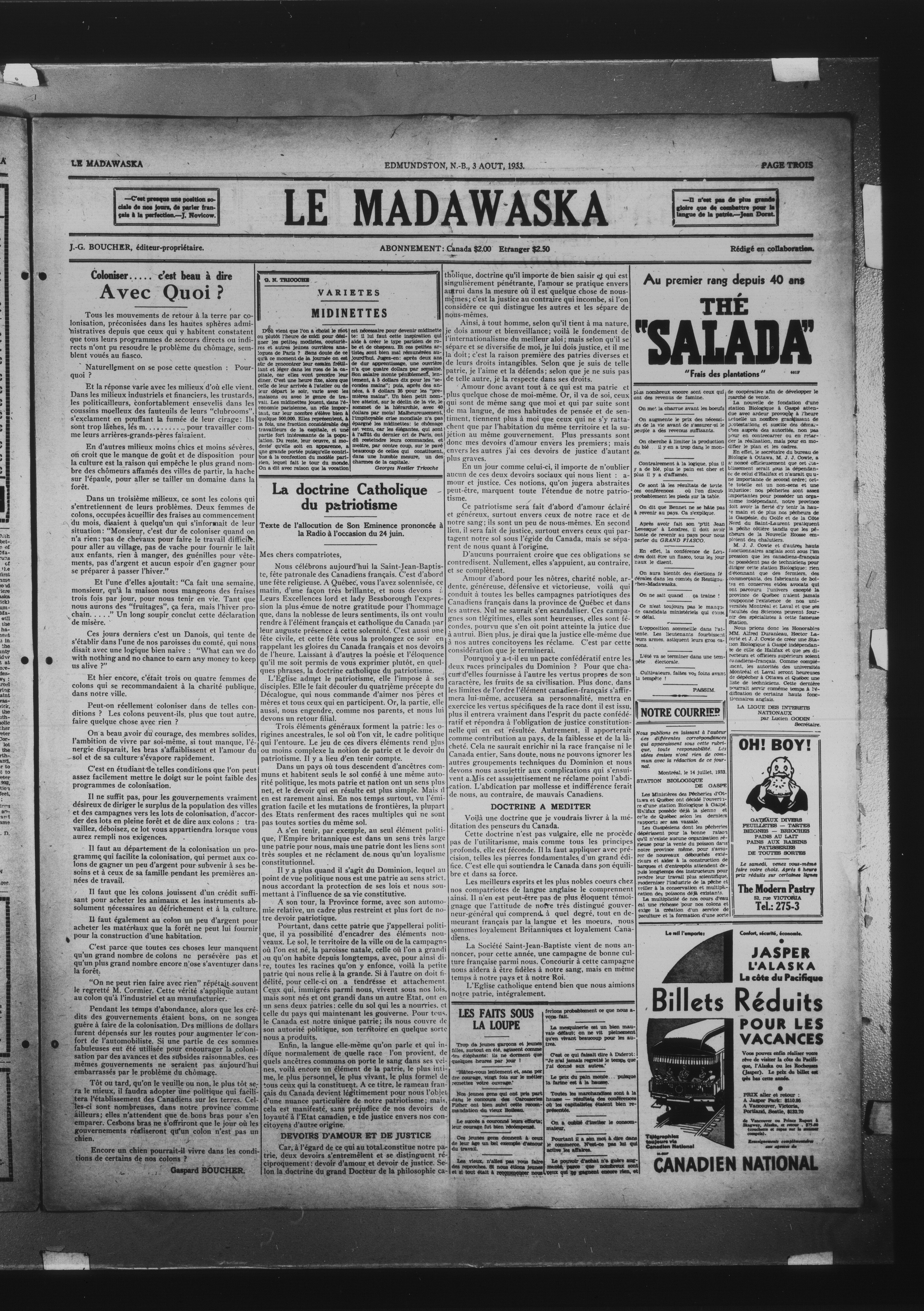 Le Madawaska : Vingtième Année, No 31 (3 août 1933)