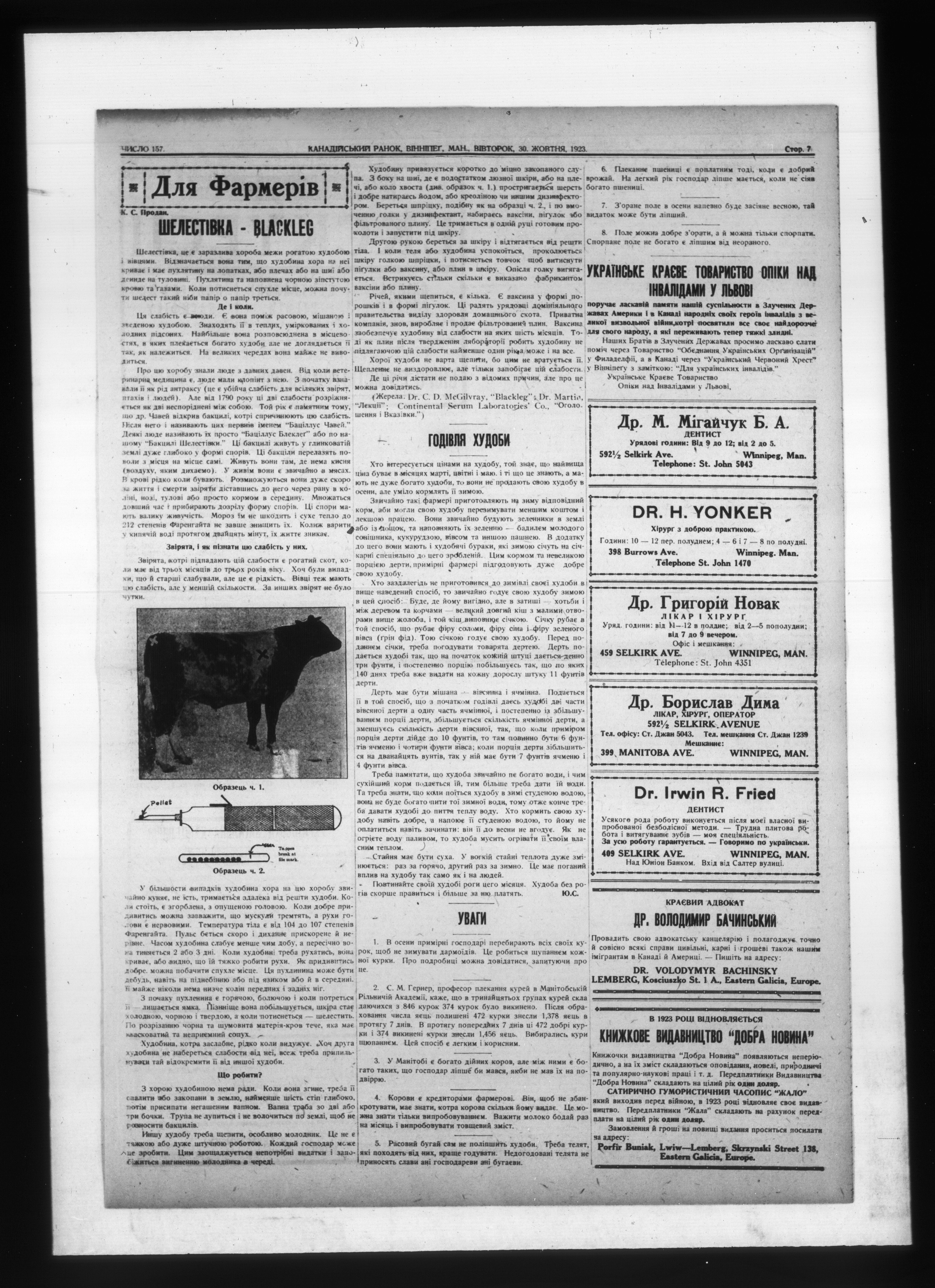 - Kanadiiskyi ranok = Canadian ranok : Chyslo 157, Rik XVIII (30 Zhovtnia 1923) = Vol. XVIII, No. 157 (October 30, 1923)