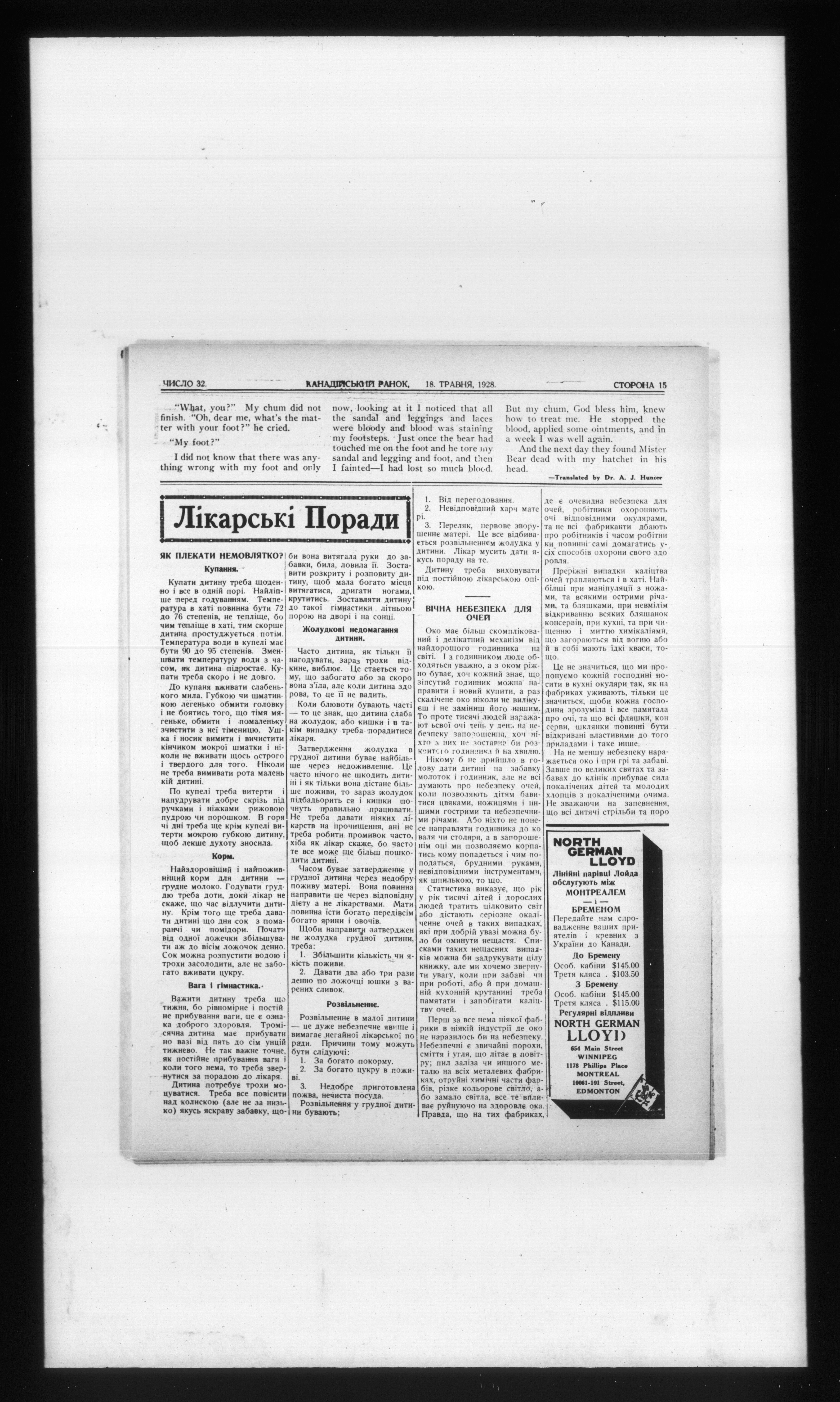 - Kanadiiskyi ranok = Canadian ranok : Chyslo 32, Rik XXIII (18 Travnia 1928) = Vol. XXIII, No. 32 (May 18, 1928)