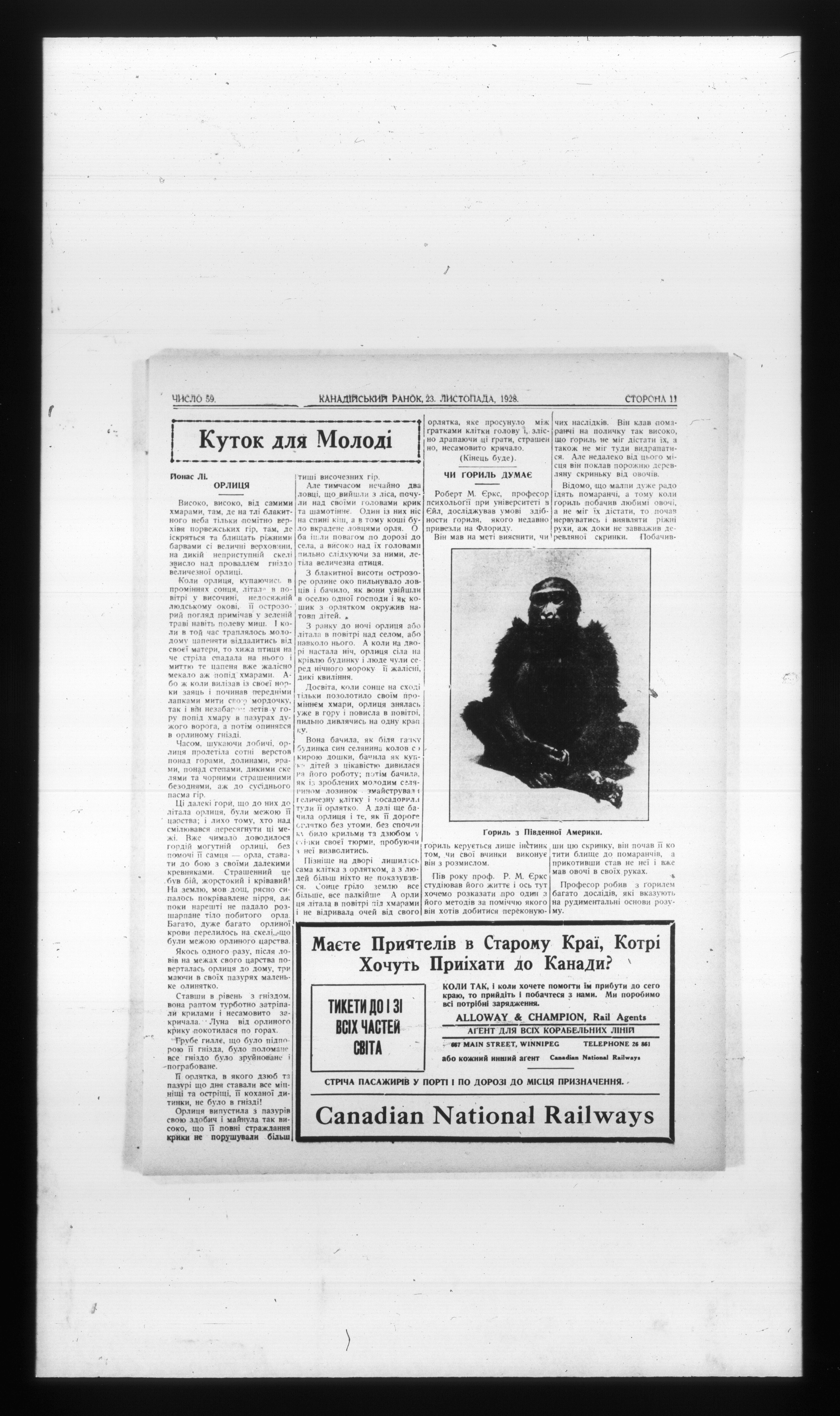 Kanadiiskyi ranok = : Kanadiiskyi ranok = Canadian ranok : Chyslo 59, Rik XXIII (23 Lystopada 1928) = Vol. XXIII, No. 59 (Nov. 23, 1928)