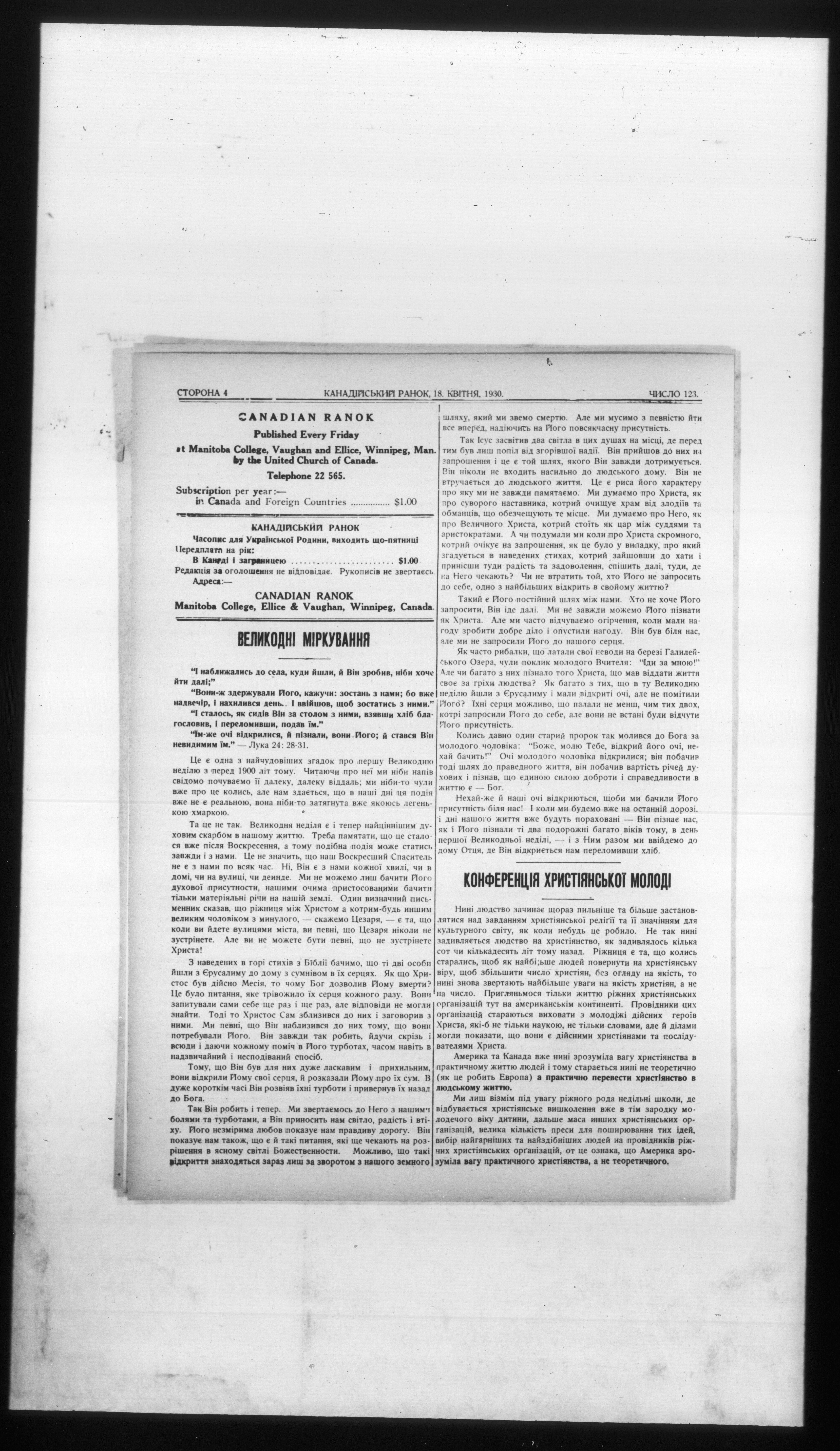 - Kanadiiskyi ranok = Canadian ranok : Chyslo 132, Rik XXV (18 Kvitnia 1930) = Vol. XXV, No. 132 (April 18, 1930)