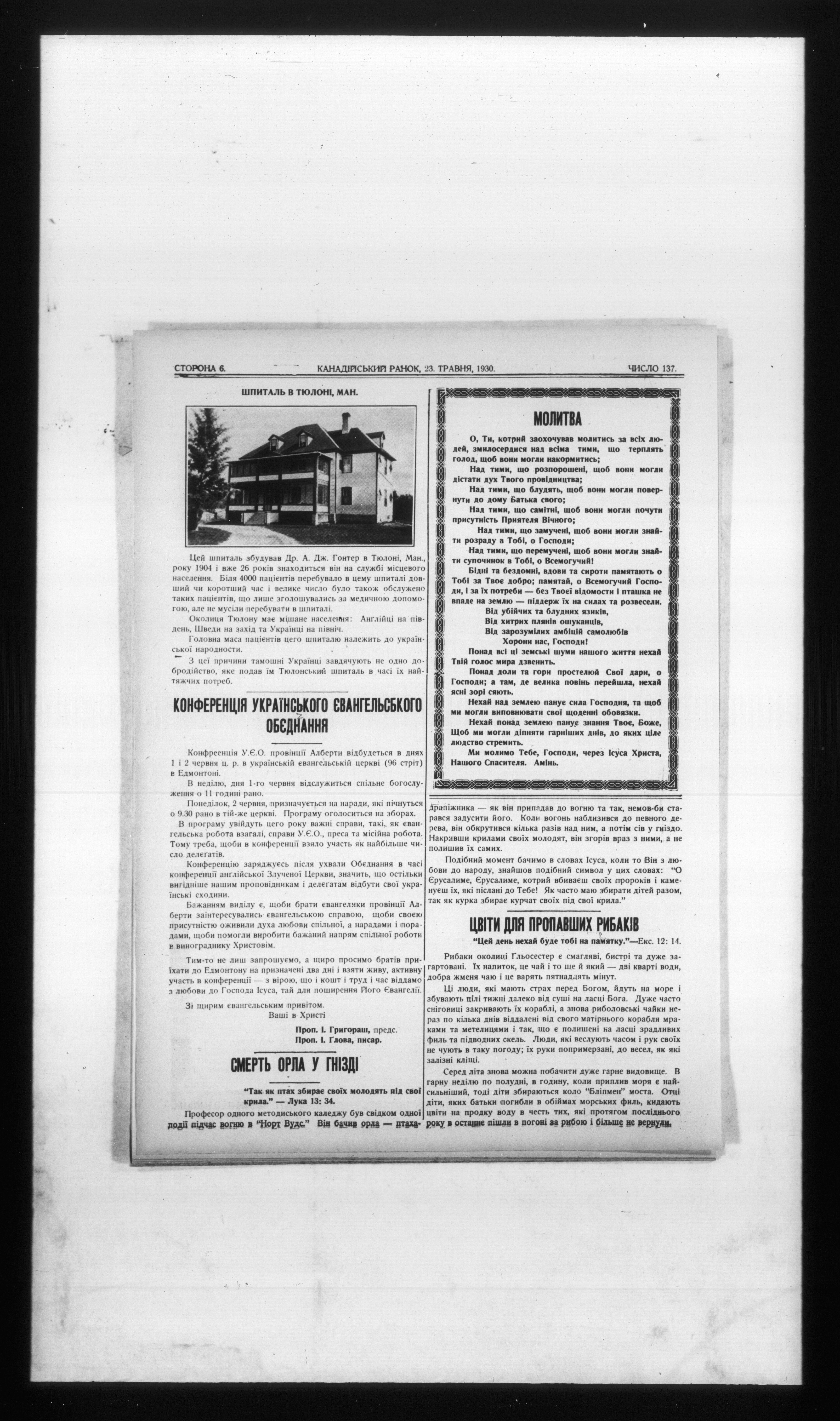 Kanadiiskyi ranok = : Kanadiiskyi ranok = Canadian ranok : Chyslo 137, Rik XXV (23 Travnia 1930) = Vol. XXV, No. 137 (May 23, 1930)