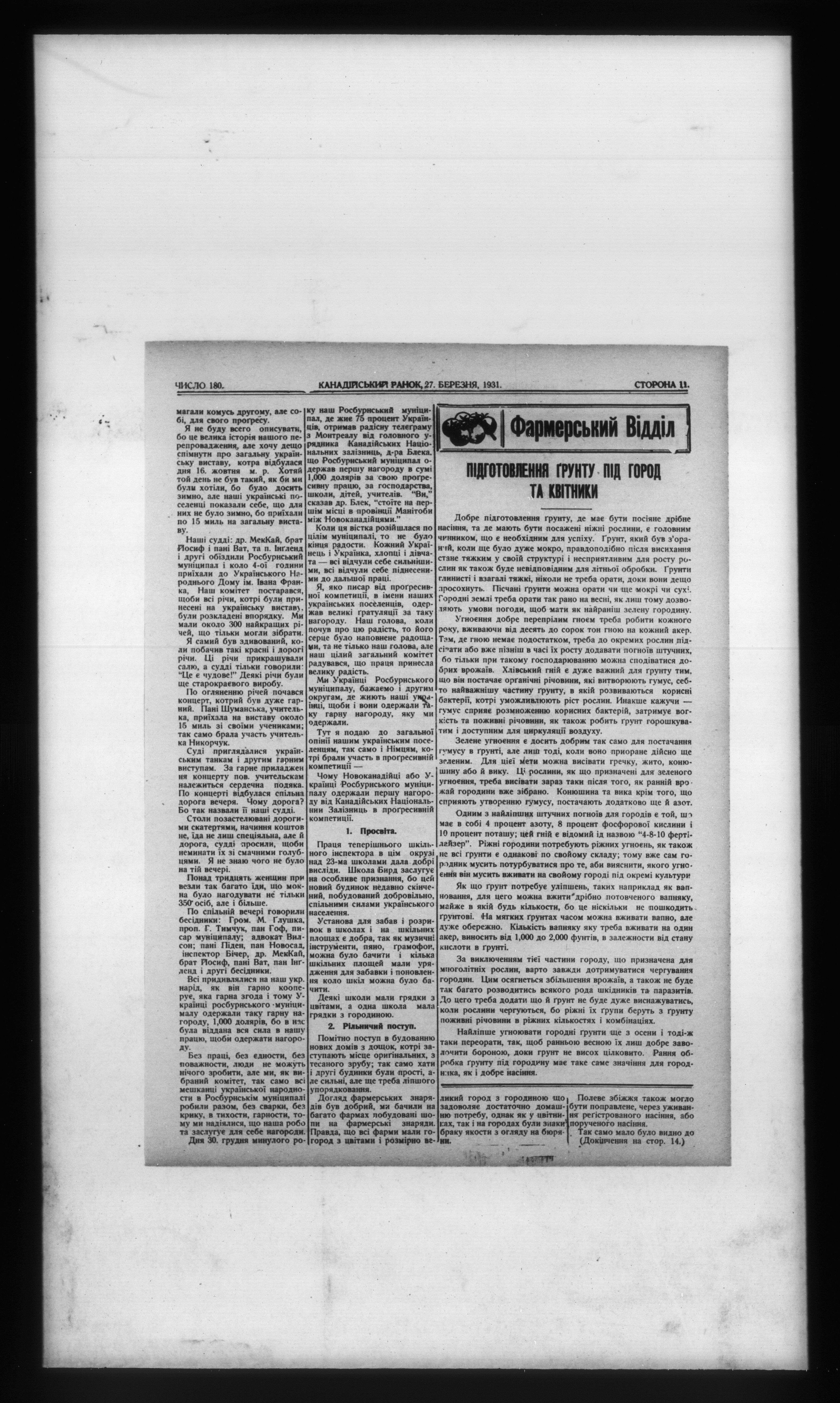 - Kanadiiskyi ranok = Canadian ranok : Chyslo 180, Rik XXVI (27 Bereznia 1931) = Vol. XXVI, No. 180 (March 27, 1931)