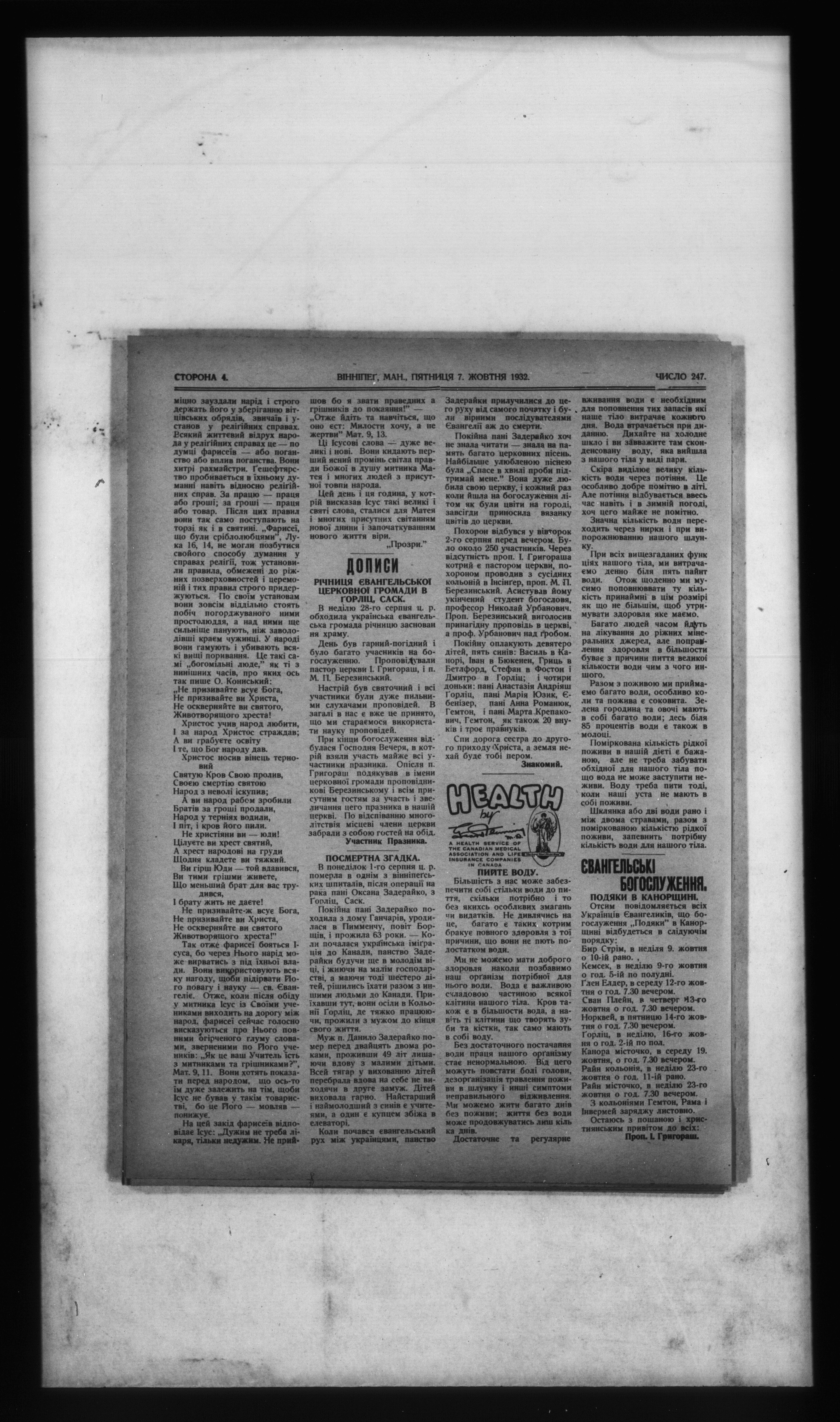 - Kanadiiskyi ranok = Canadian ranok : Chyslo 247, Rik XXVI (7 Zhovtnia 1932) = Vol. XXVI, No. 247 (October 7, 1923)