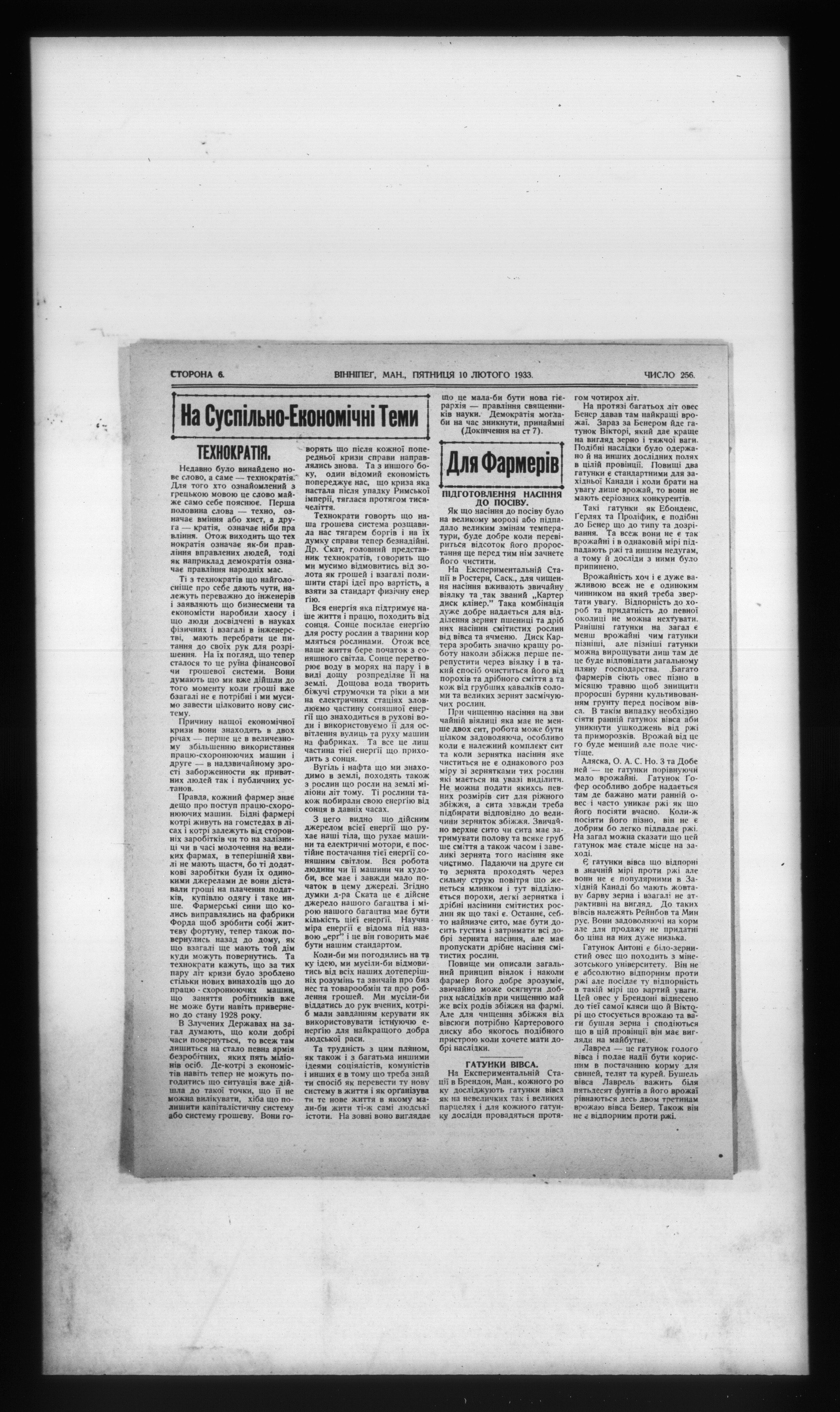 Kanadiiskyi ranok = : Kanadiiskyi ranok = Canadian ranok : Chyslo 256, Rik XXVII (10 Liutoho 1933) = Vol. XXVII, No. 256 (February 10, 1933)