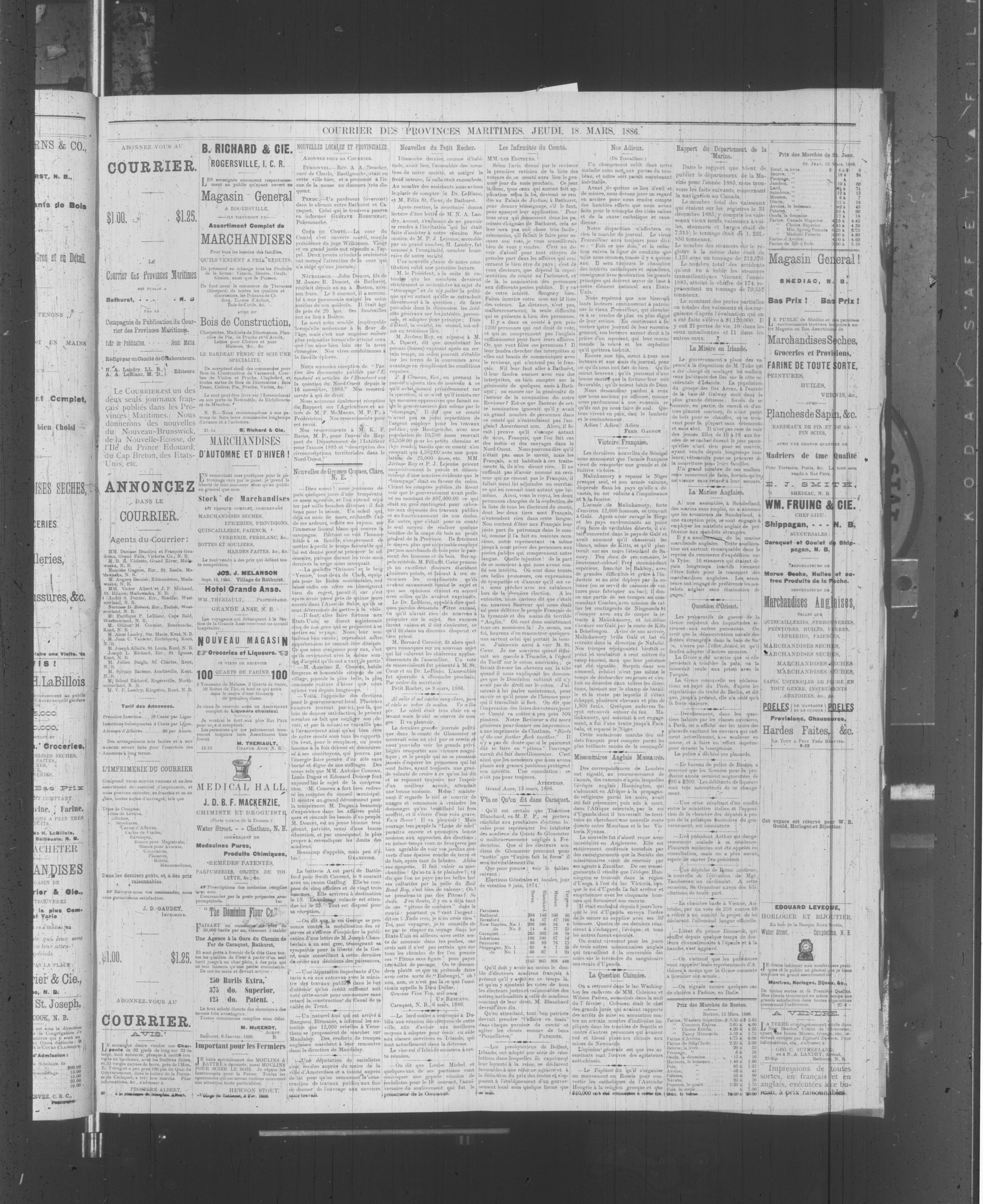 Bathurst, N.B. : Compagnie de Publication du Courrier des provinces maritimes, [1886]; 4 images, 0 avec recherche en texte intégral
