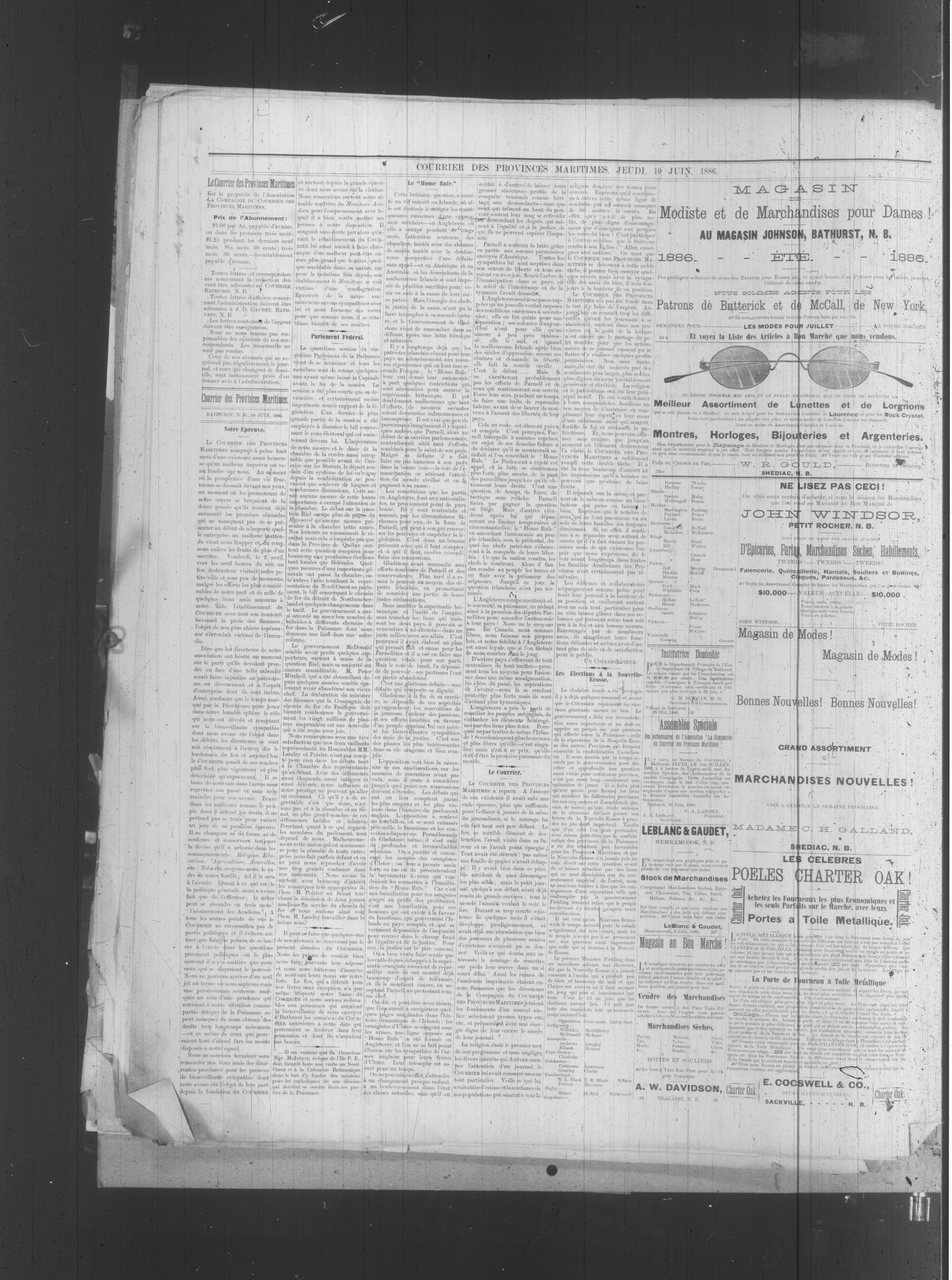 Bathurst, N.B. : Compagnie de Publication du Courrier des provinces maritimes, [1886]; 4 images, 0 avec recherche en texte intégral