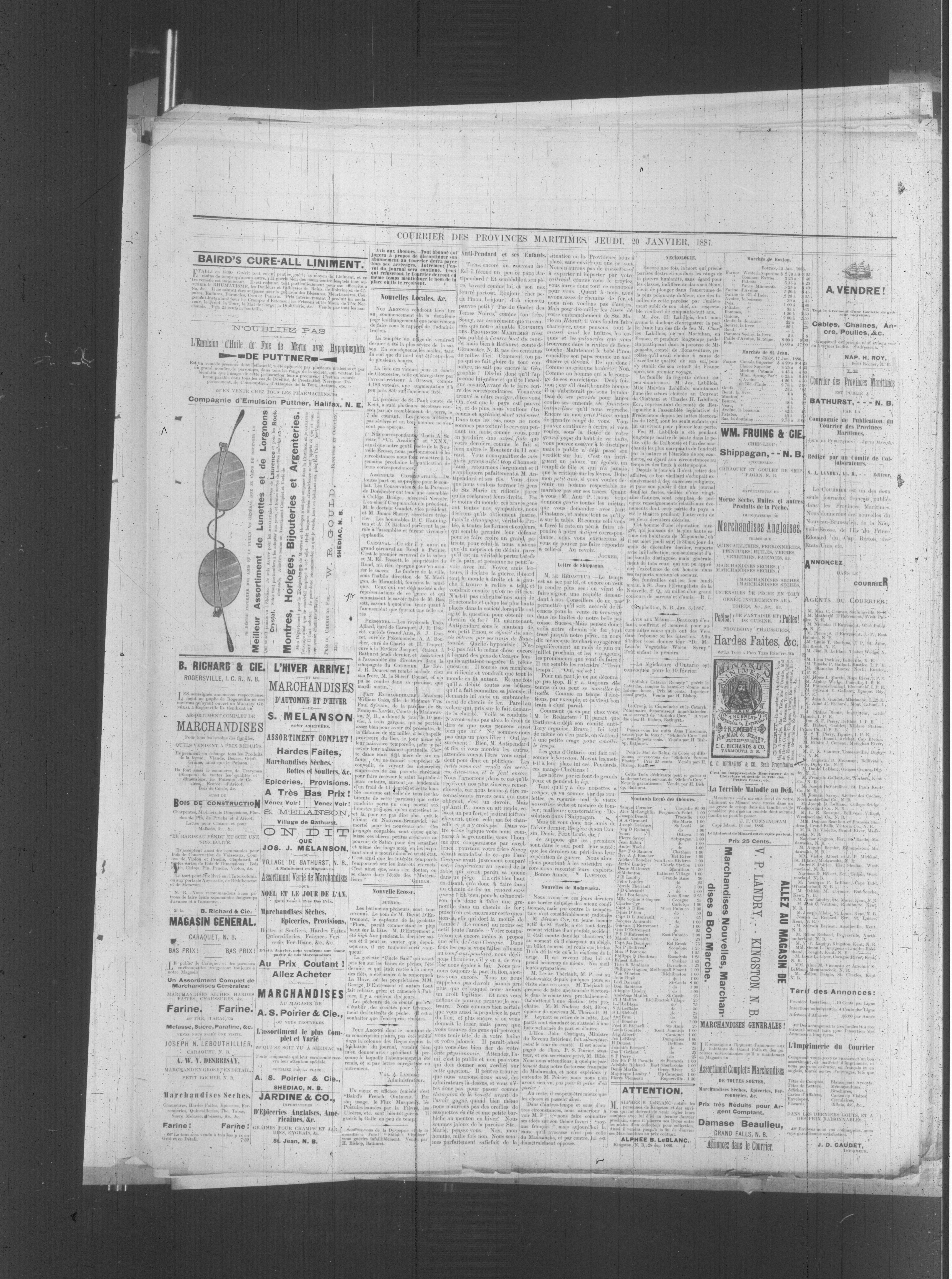 Bathurst, N.B. : Association la Compagnie de Publication du Courrier des provinces maritimes, [1887]; 4 images, 0 avec recherche en texte intégral