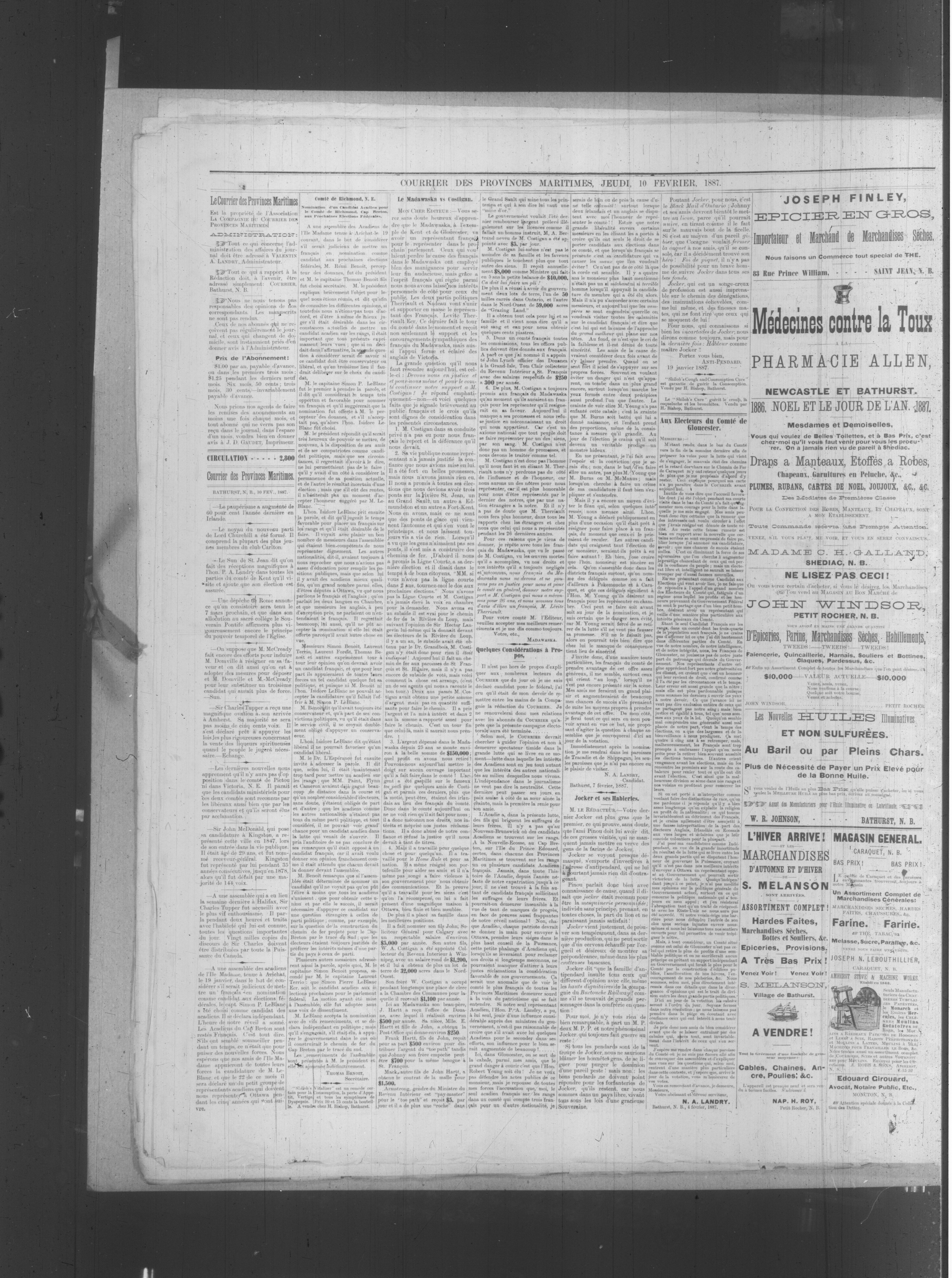 Bathurst, N.B. : Association la Compagnie de Publication du Courrier des provinces maritimes, [1887]; 4 images, 0 avec recherche en texte intégral