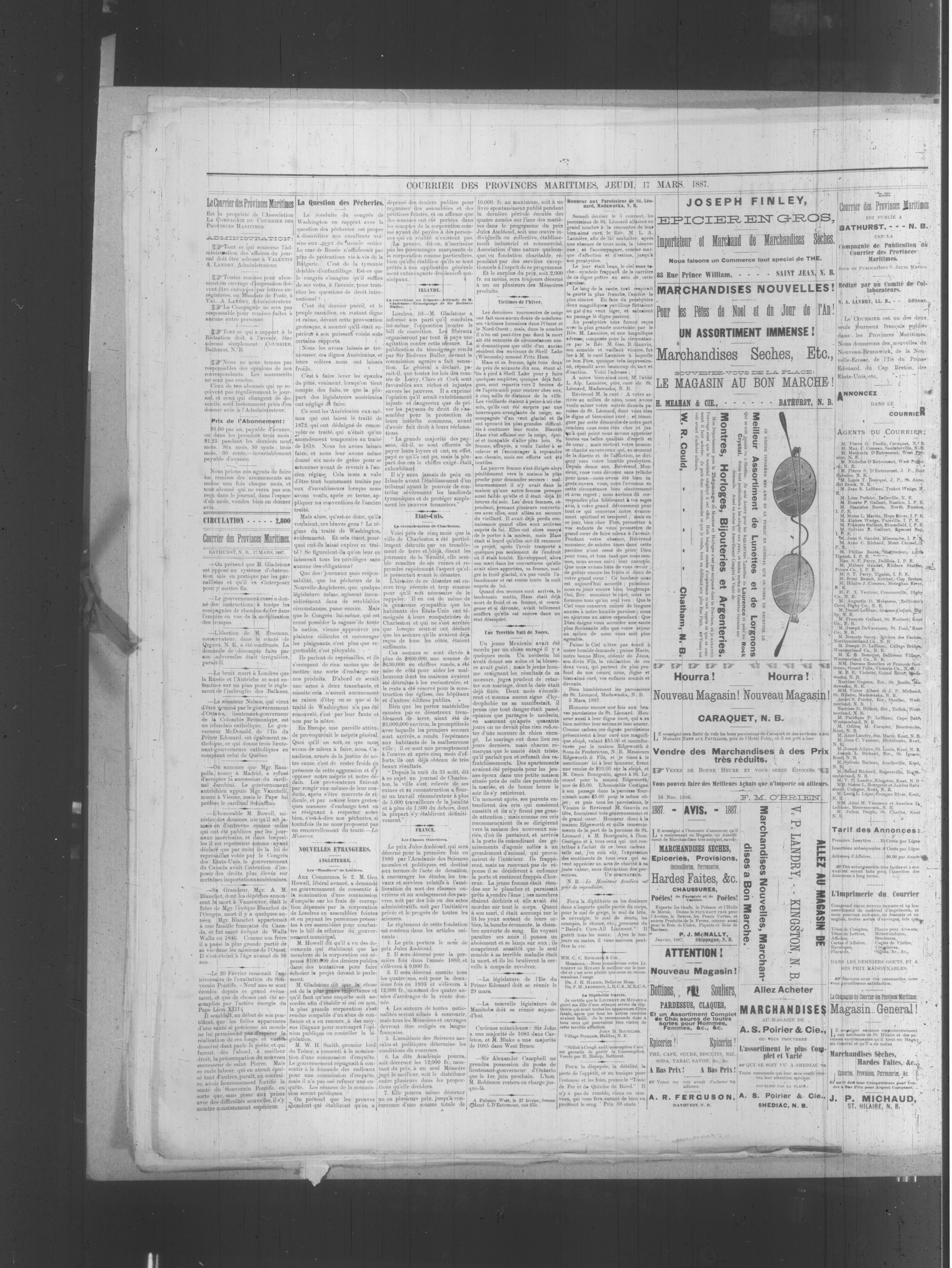 Bathurst, N.B. : Association la Compagnie de Publication du Courrier des provinces maritimes, [1887]; 4 images, 0 avec recherche en texte intégral