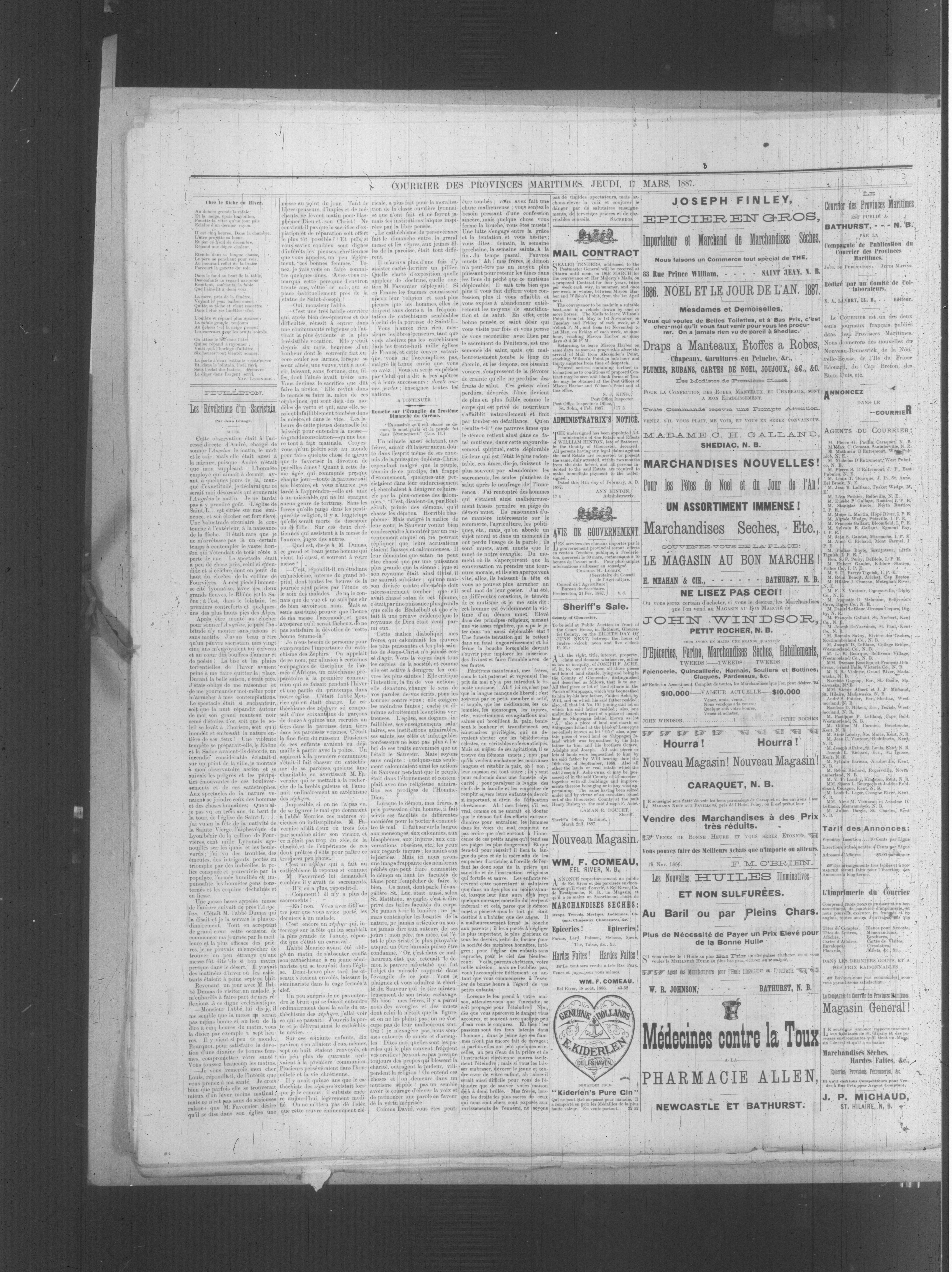 Aide Bathurst, N.B. : Association la Compagnie de Publication du Courrier des provinces maritimes, [1887]; 4 images, 0 avec recherche en texte intégral