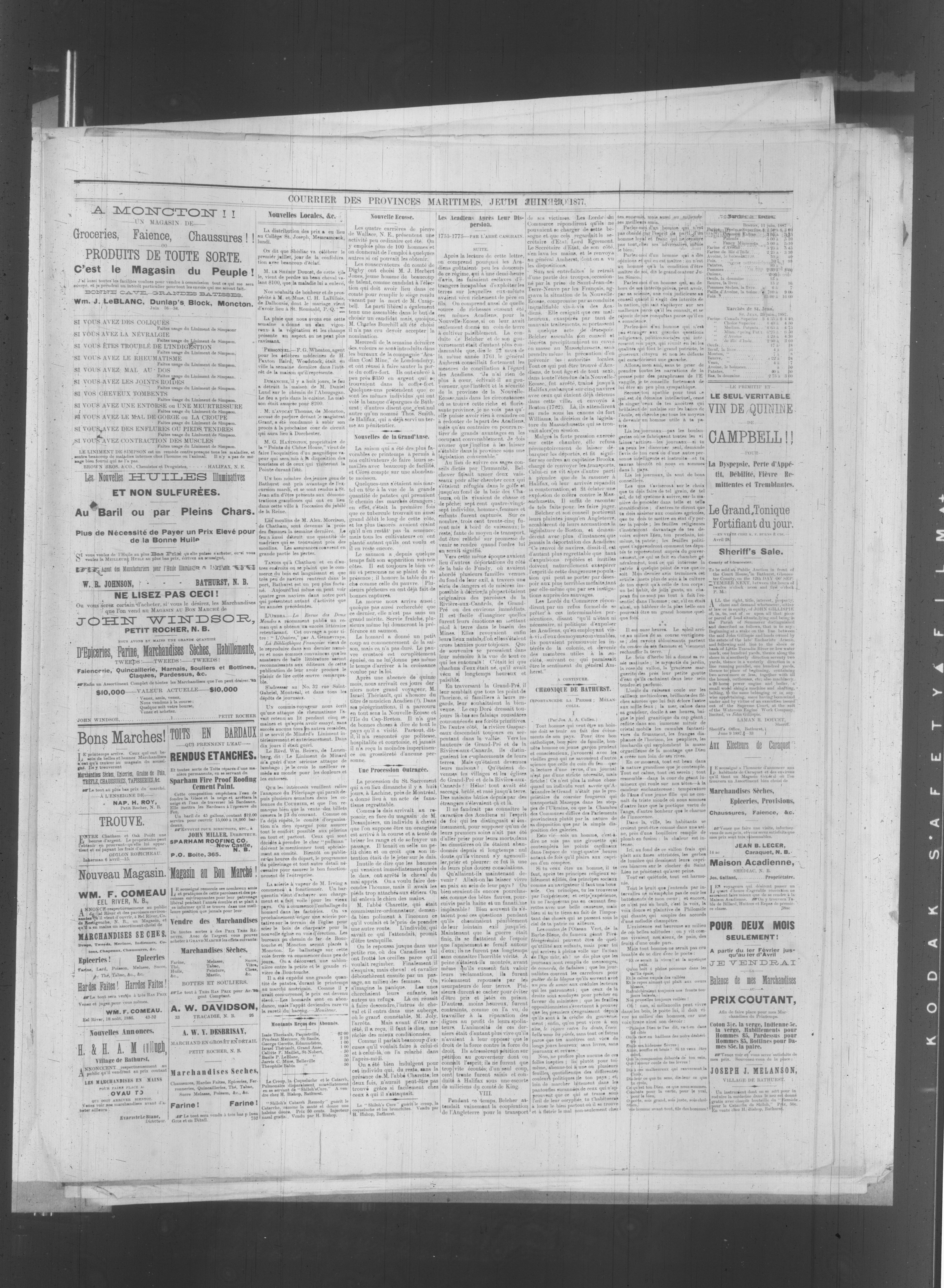 Bathurst, N.B. : Association la Compagnie de Publication du Courrier des provinces maritimes, [1887]; 4 images, 0 avec recherche en texte intégral