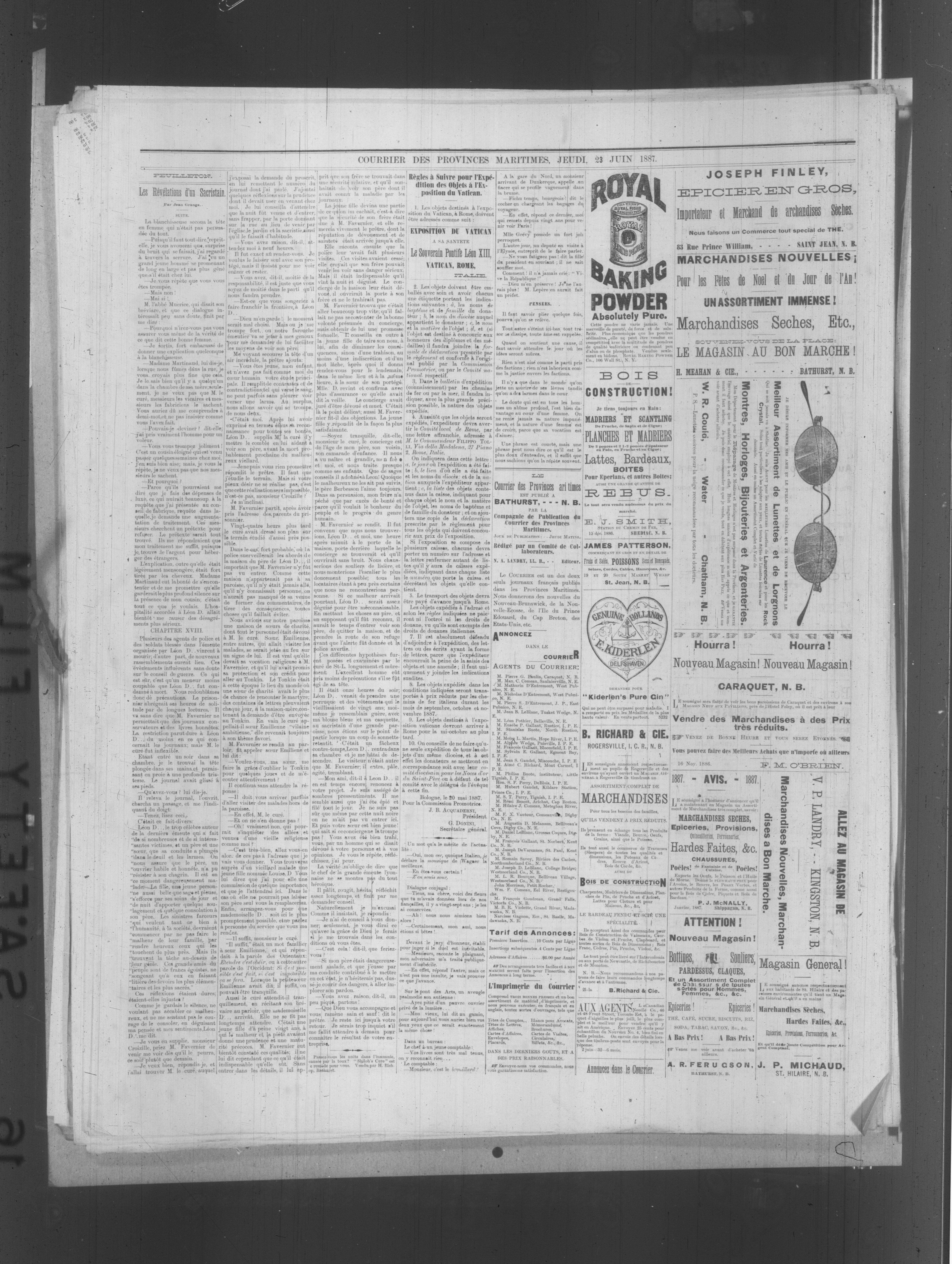 Bathurst, N.B. : Association la Compagnie de Publication du Courrier des provinces maritimes, [1887]; 4 images, 0 avec recherche en texte intégral