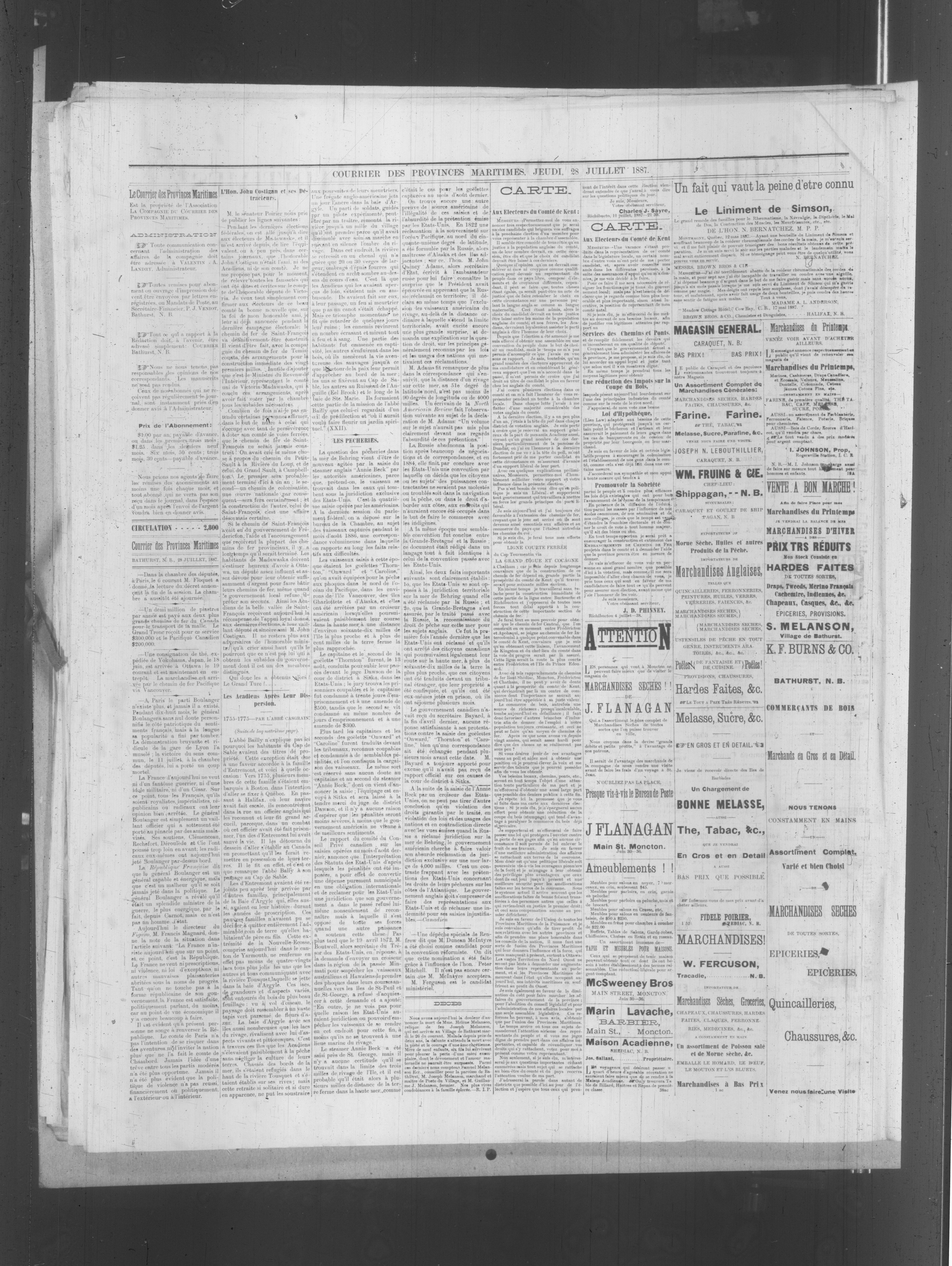 Bathurst, N.B. : Association la Compagnie de Publication du Courrier des provinces maritimes, [1887]; 4 images, 0 avec recherche en texte intégral
