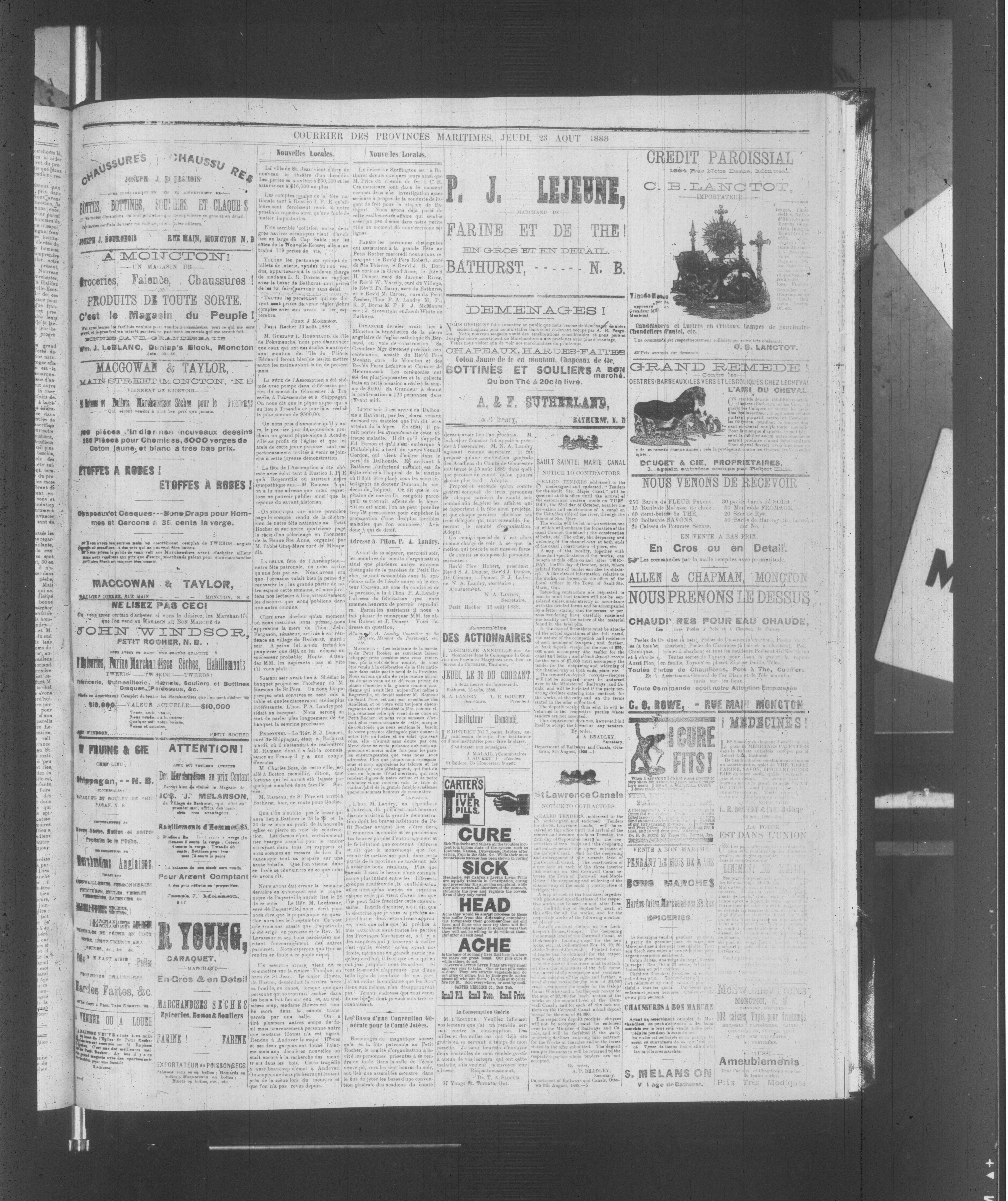 Bathurst, N.B. : Association la Compagnie de Publication du Courrier des provinces maritimes, [1888]; 4 images, 0 avec recherche en texte intégral