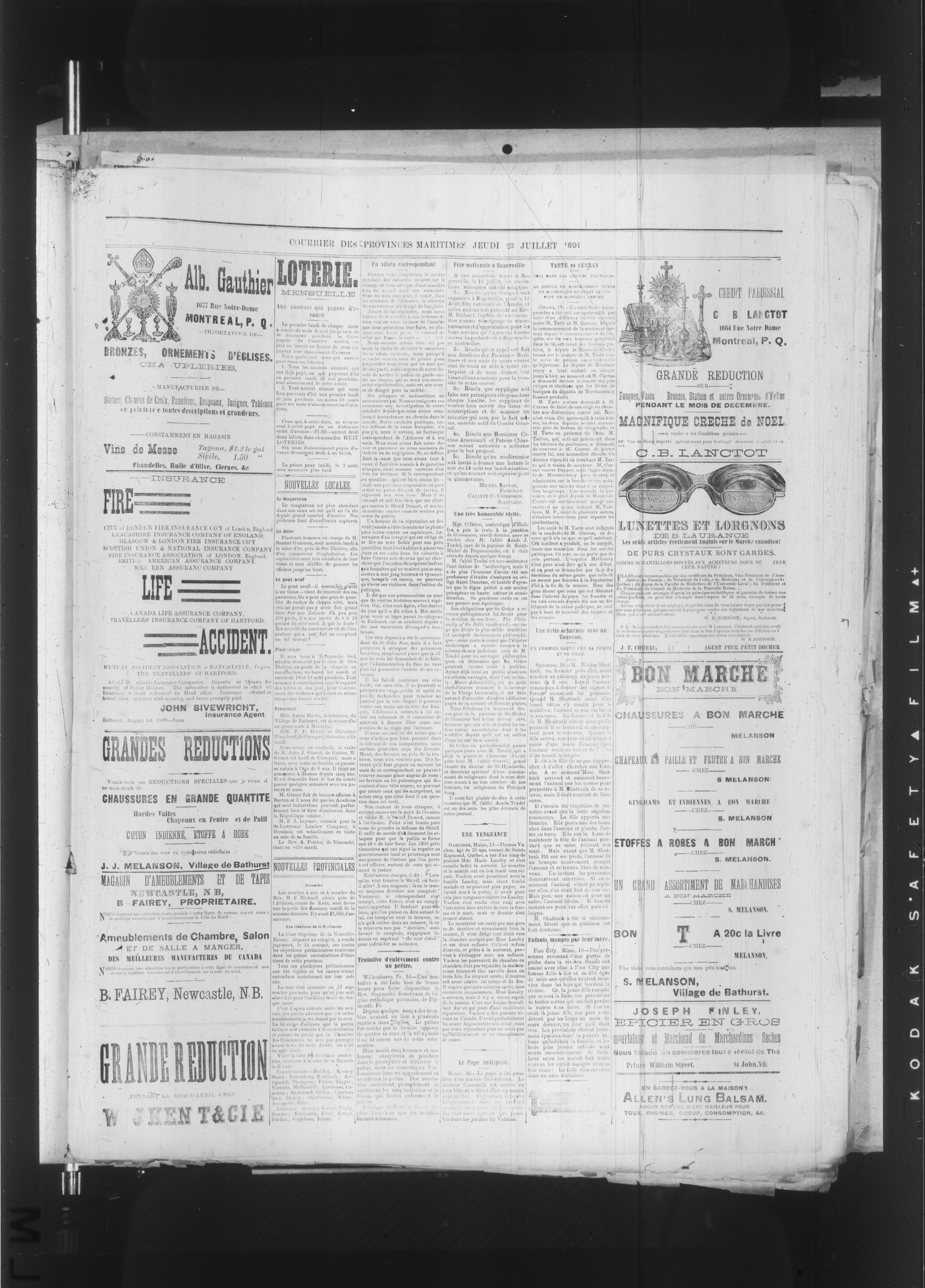 Bathurst, N.B. : P.J. Veniot, Propriétaire, [1891]; 4 images, 0 avec recherche en texte intégral