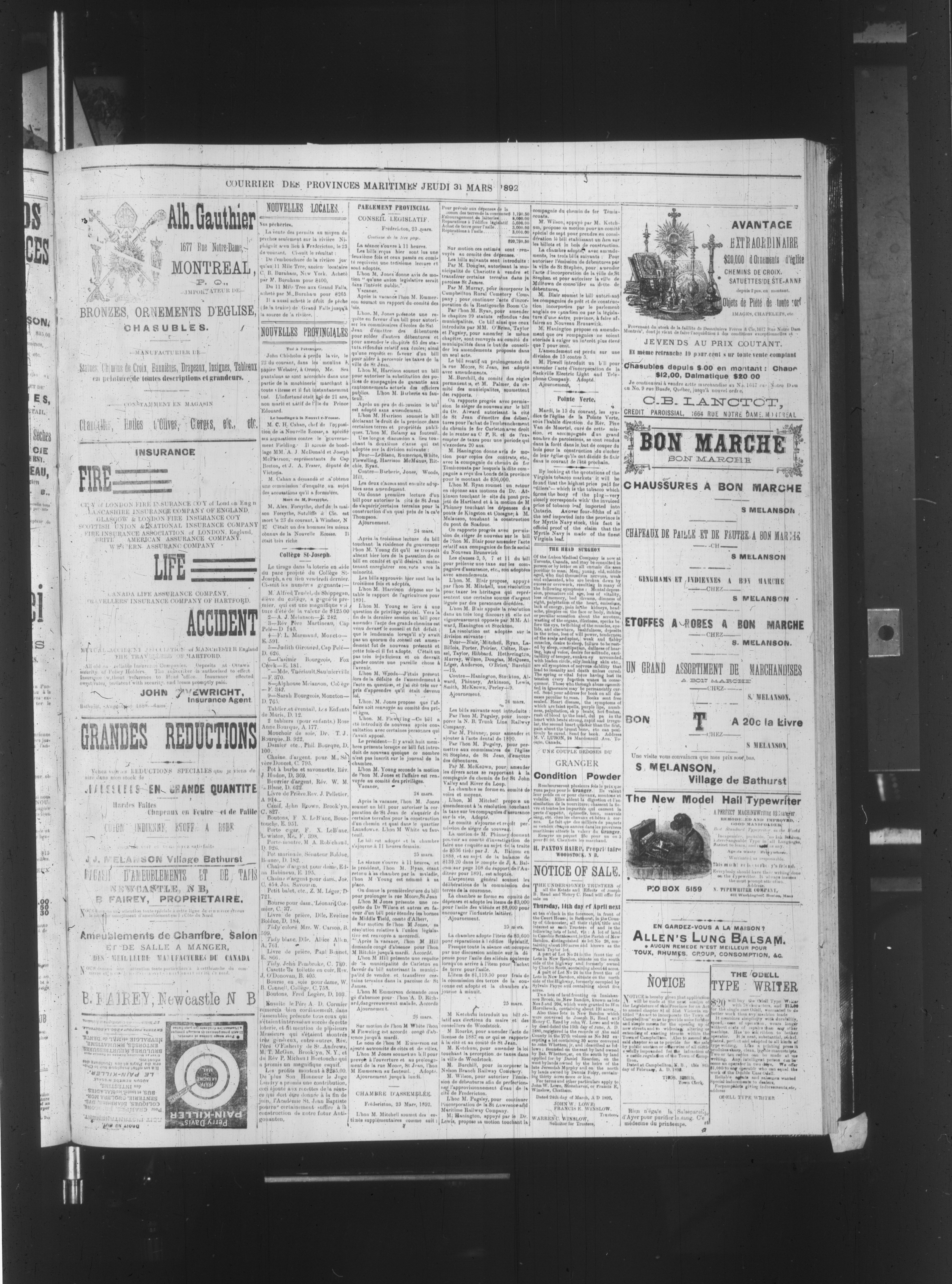 Bathurst, N.B. : P.J. Veniot, Propriétaire, [1892]; 4 images, 0 avec recherche en texte intégral