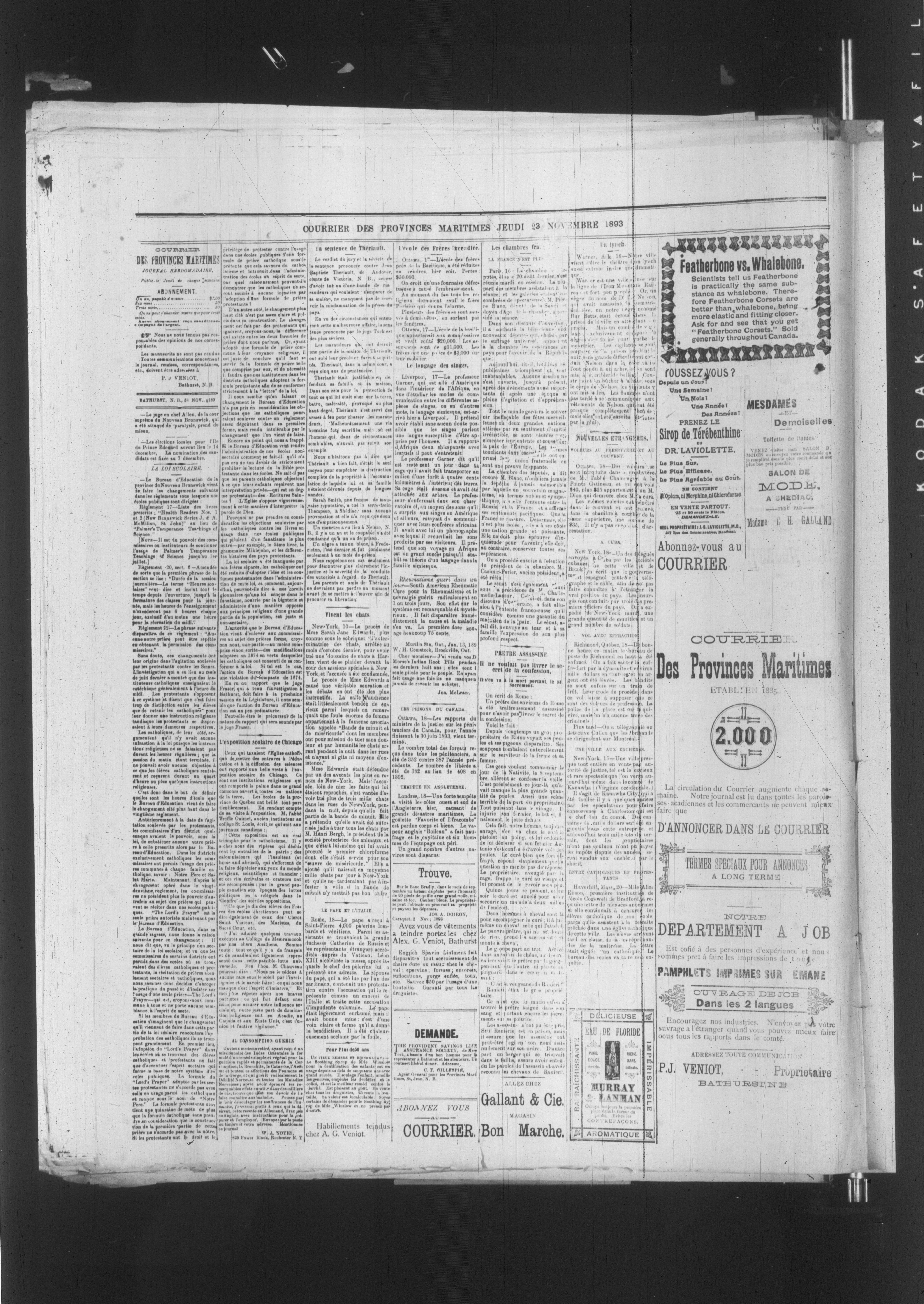 Bathurst, N.B. : P.J. Veniot, Propriétaire, [1893]; 4 images, 0 avec recherche en texte intégral