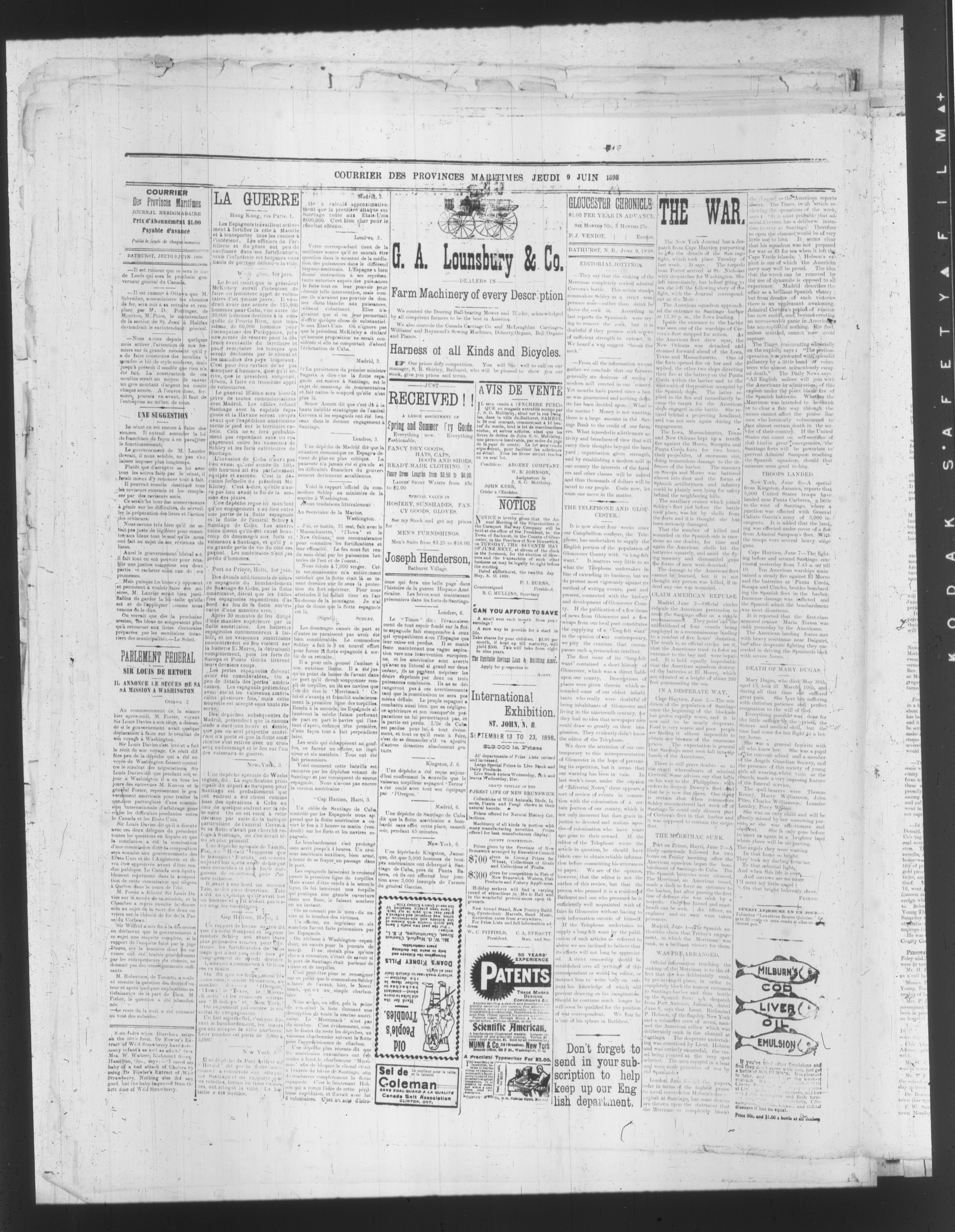 Courrier des Provinces maritimes : Courrier des Provinces maritimes and Glooucester chronicle : Vol. 13, No. 17 (9 juin 1898)