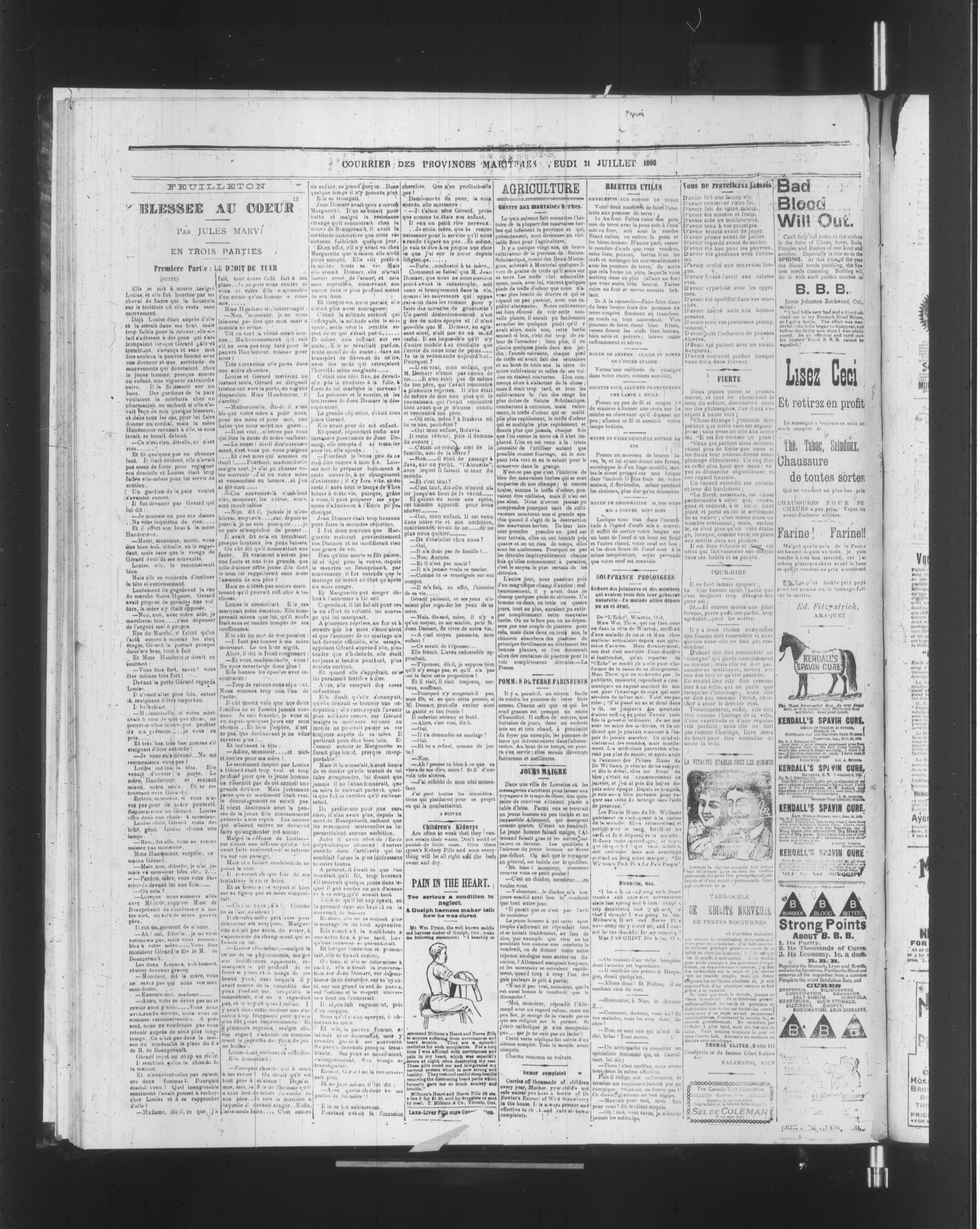 Courrier des Provinces maritimes : Courrier des Provinces maritimes and Glooucester chronicle : Vol. 13, No. 22 (21 juillet 1898)