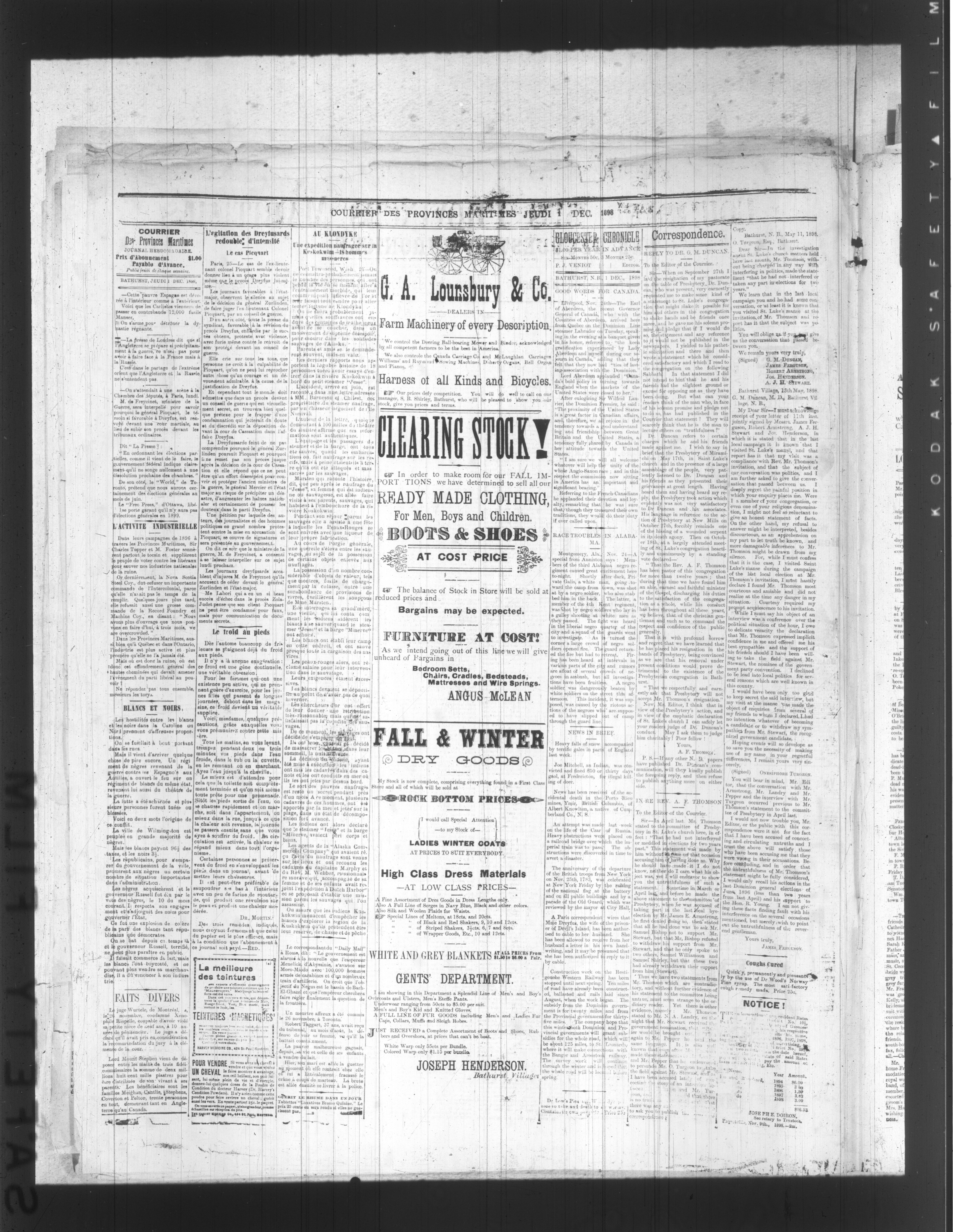 - Courrier des Provinces maritimes and Glooucester chronicle : Vol. 13, No. 41 (1 décembre 1898)
