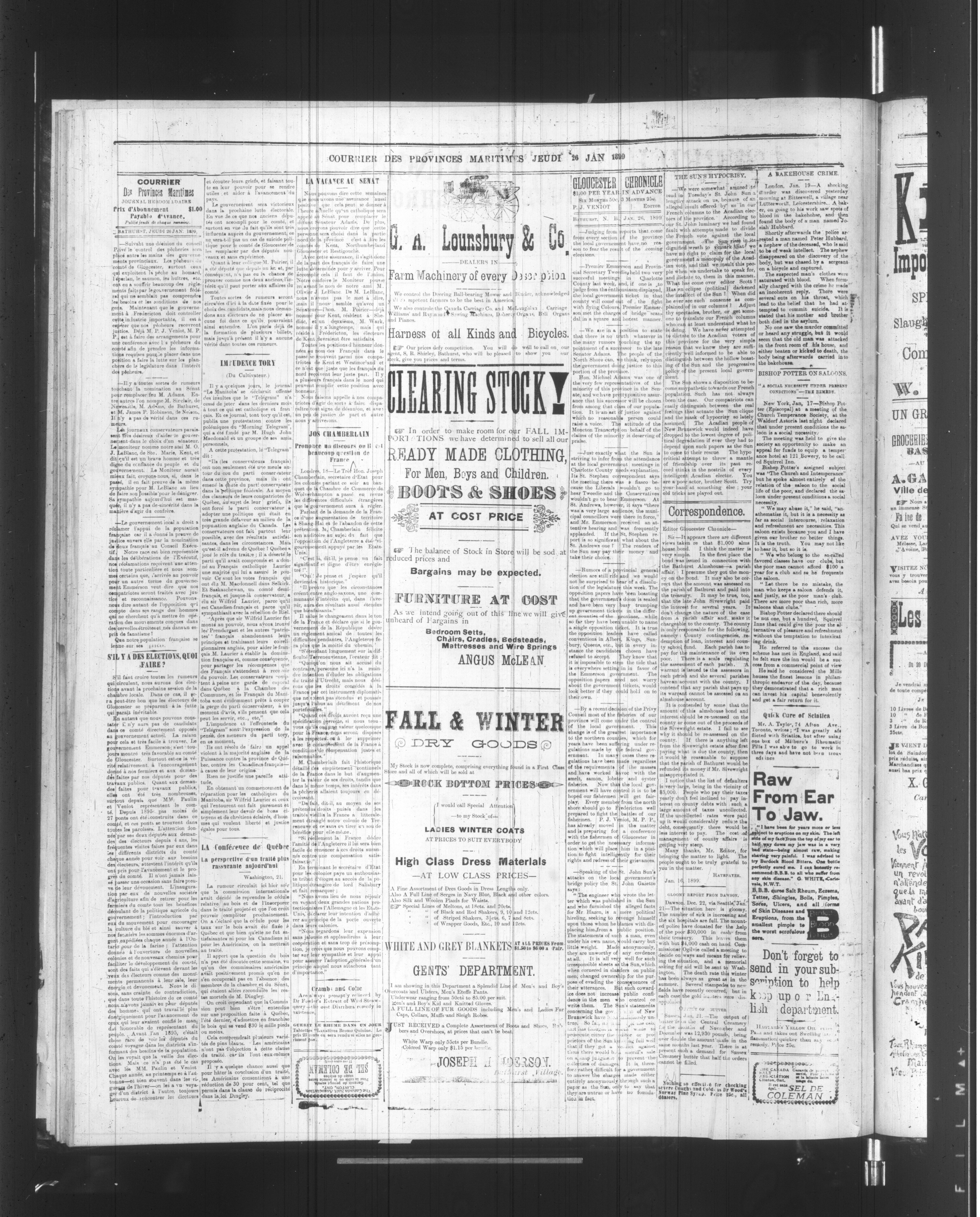 Courrier des Provinces maritimes : Courrier des Provinces maritimes and Glooucester chronicle : Vol. 13, No. 49 (26 janvier 1899)