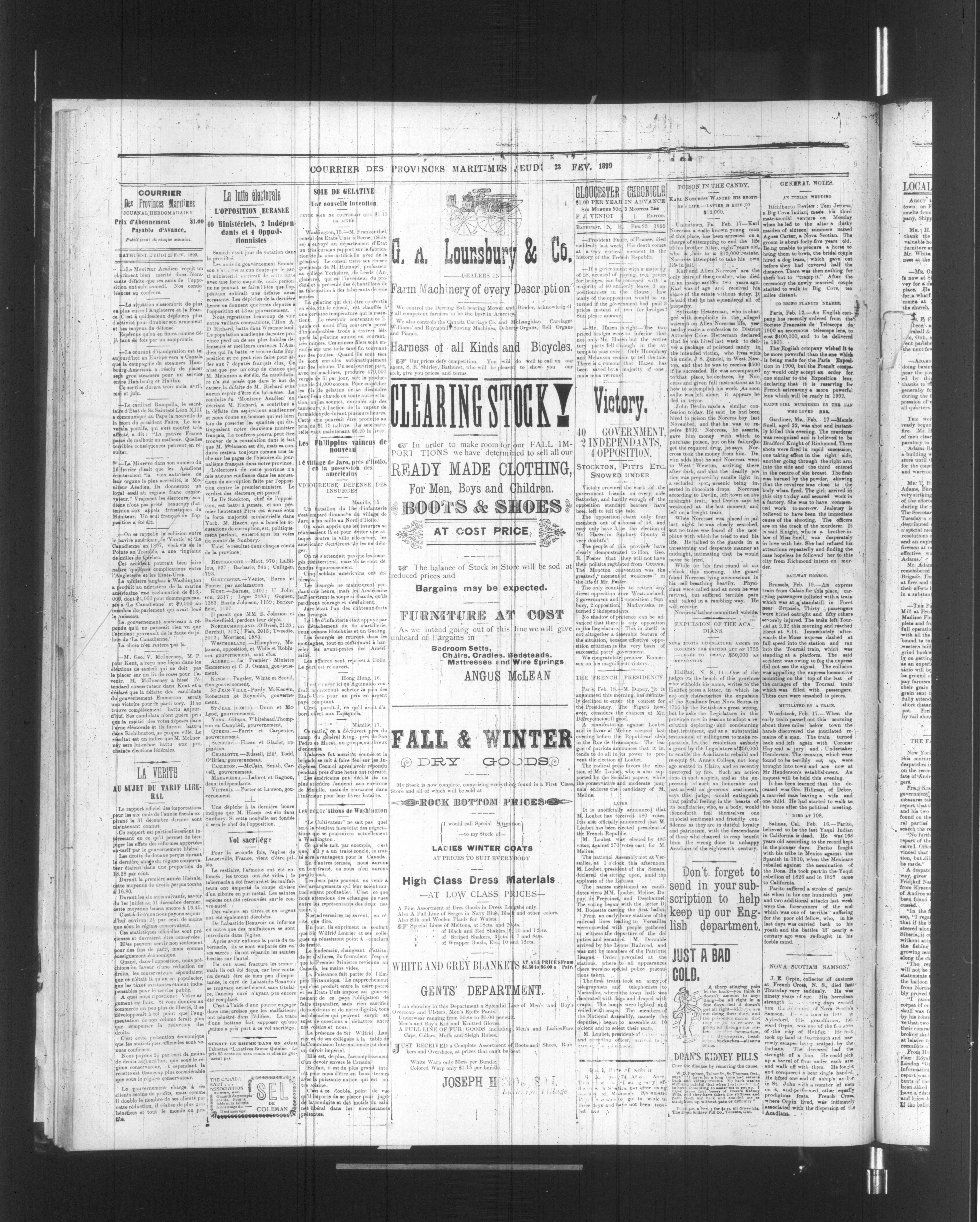 Courrier des Provinces maritimes : Courrier des Provinces maritimes and Glooucester chronicle : Vol. 14, No. 1 (23 février 1899)