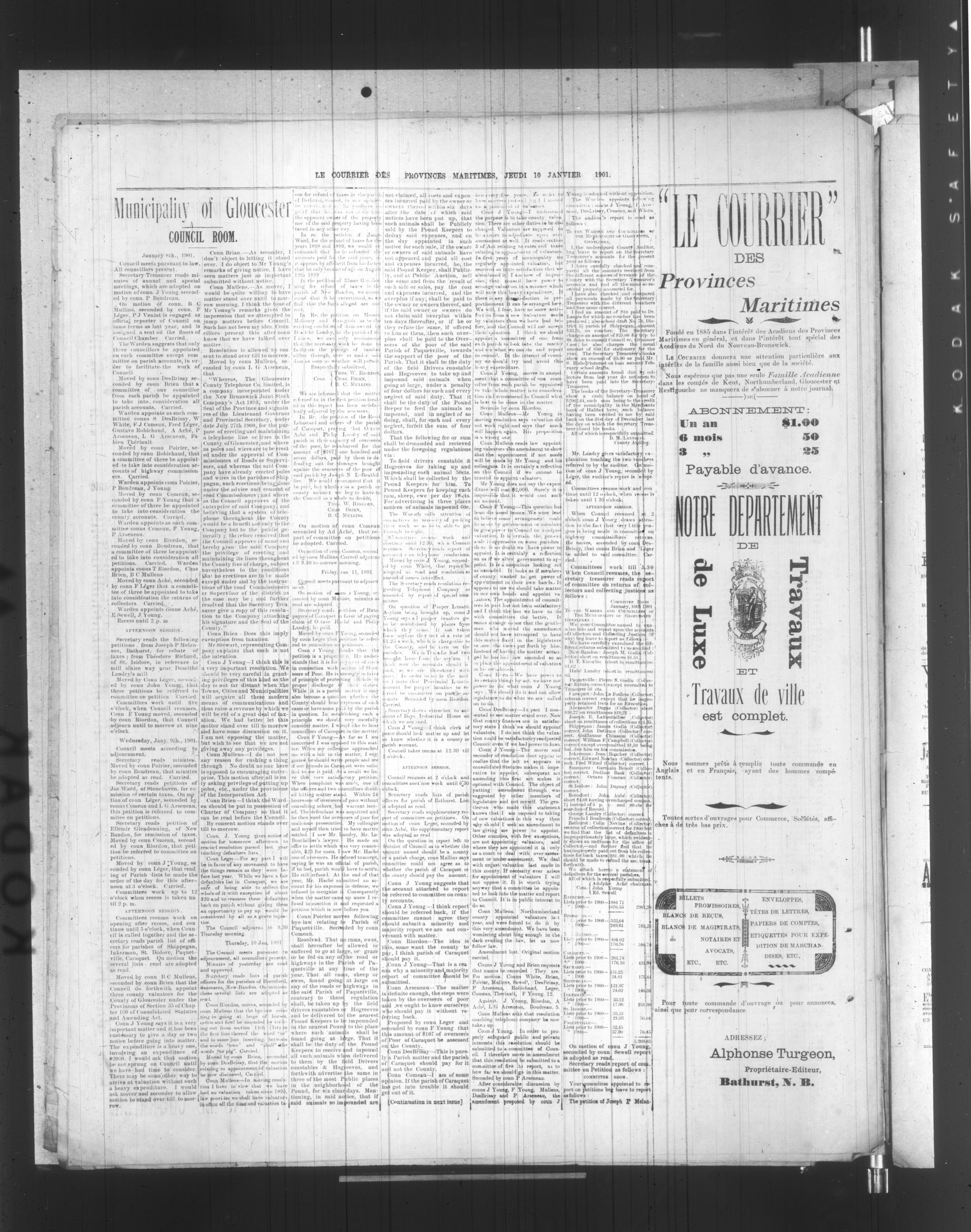 Bathurst, N.B. : Alphonse Turgeon, Éditeur-Propriétaire, [1901]; 4 images, 0 avec recherche en texte intégral