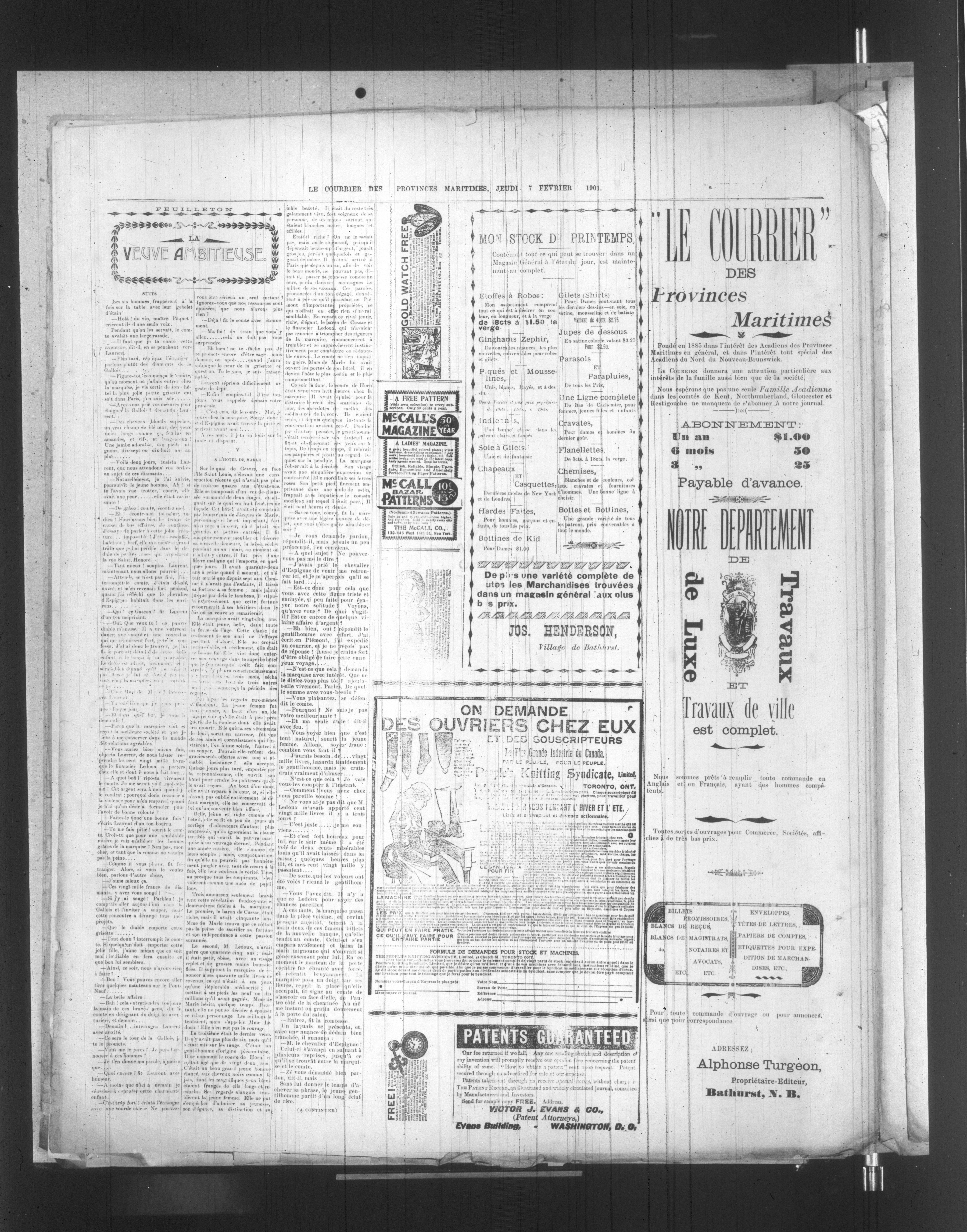 Bathurst, N.B. : Alphonse Turgeon, Éditeur-Propriétaire, [1901]; 4 images, 0 avec recherche en texte intégral