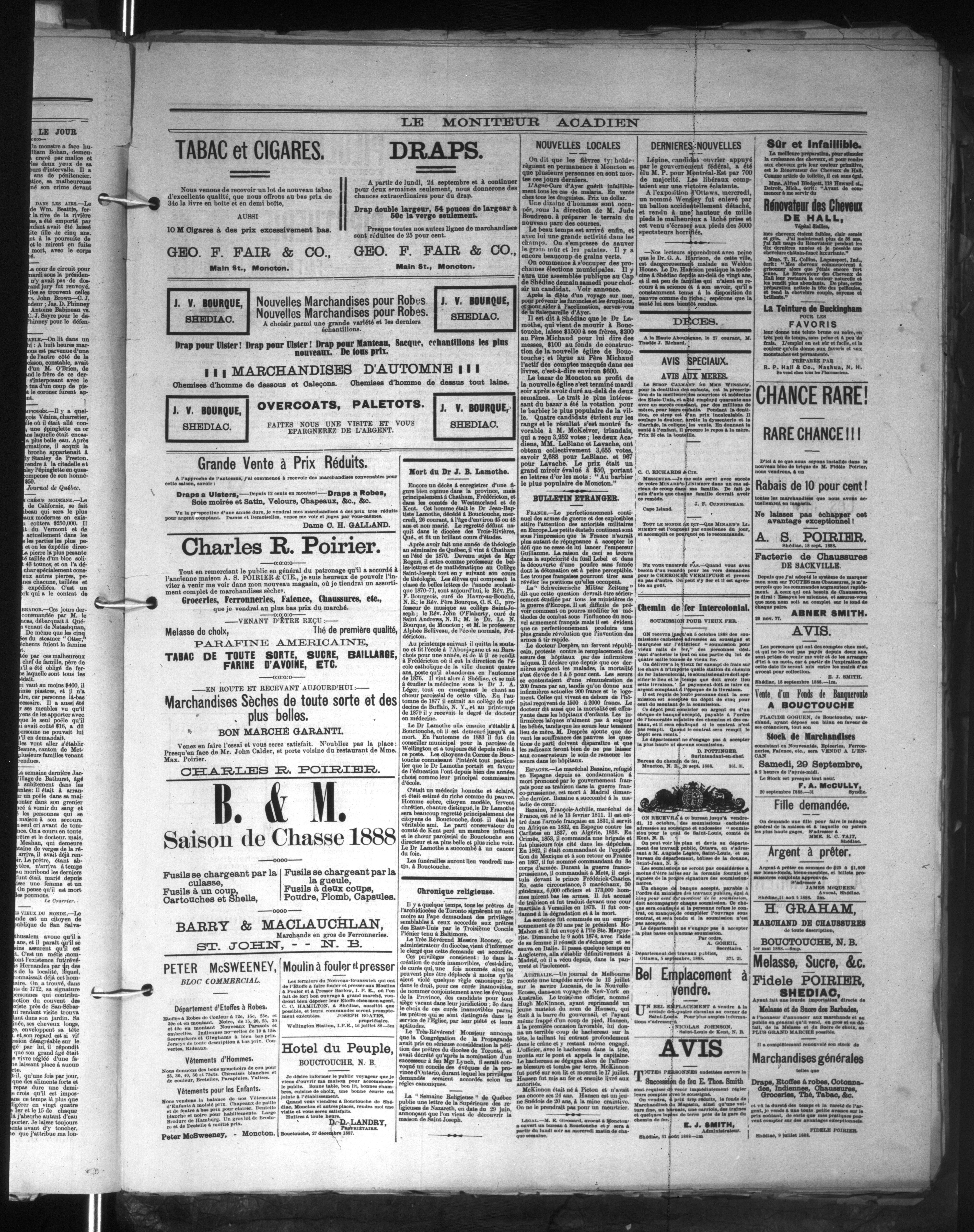 Shédiac, N.B. : Ferd. Robidoux, Éditeur, Propriétaire, [1888]; 4 images avec recherche en texte intégral