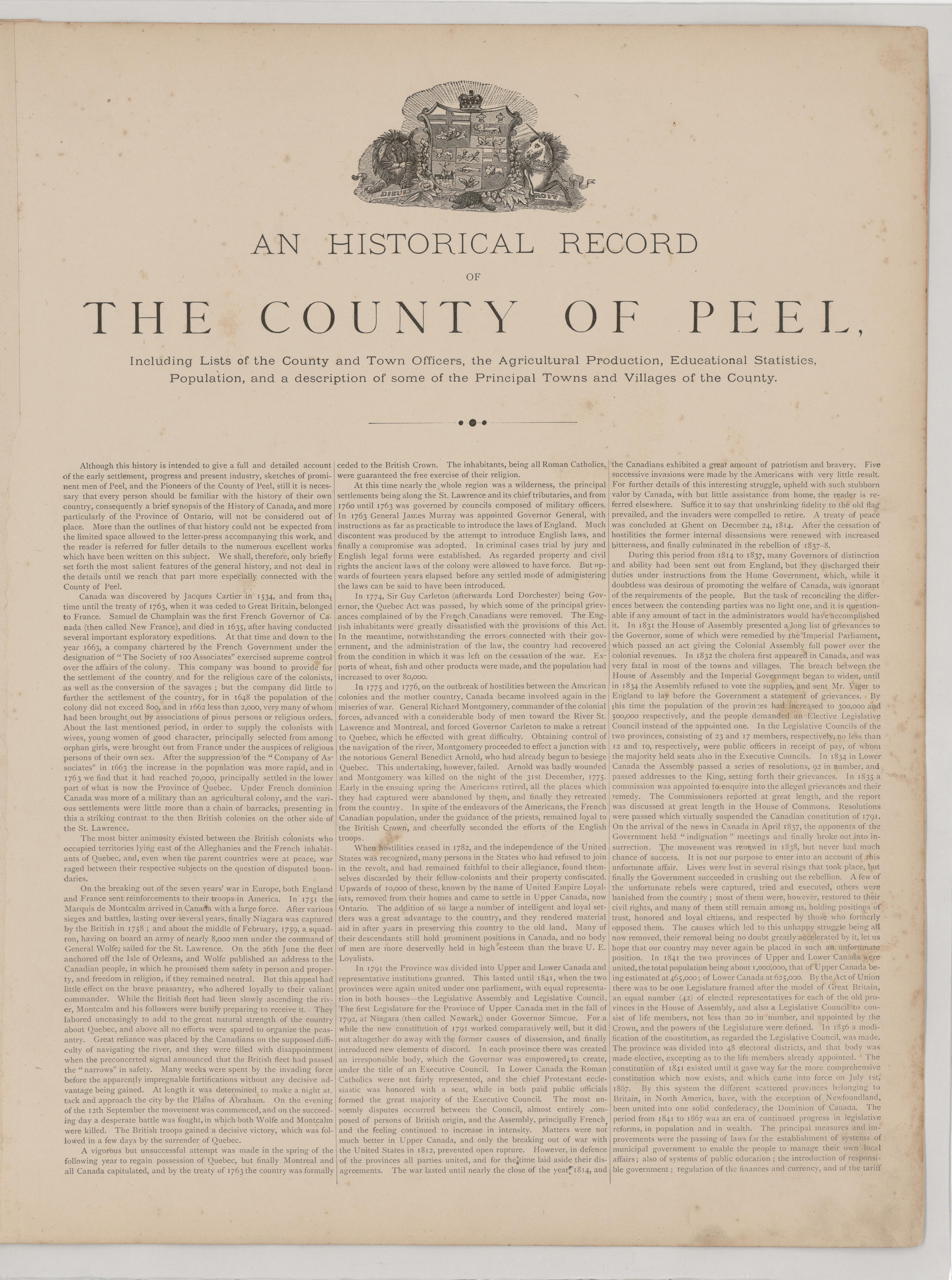 Cover title [image not available]: Historical atlas of Peel County, Ont., illustrated.