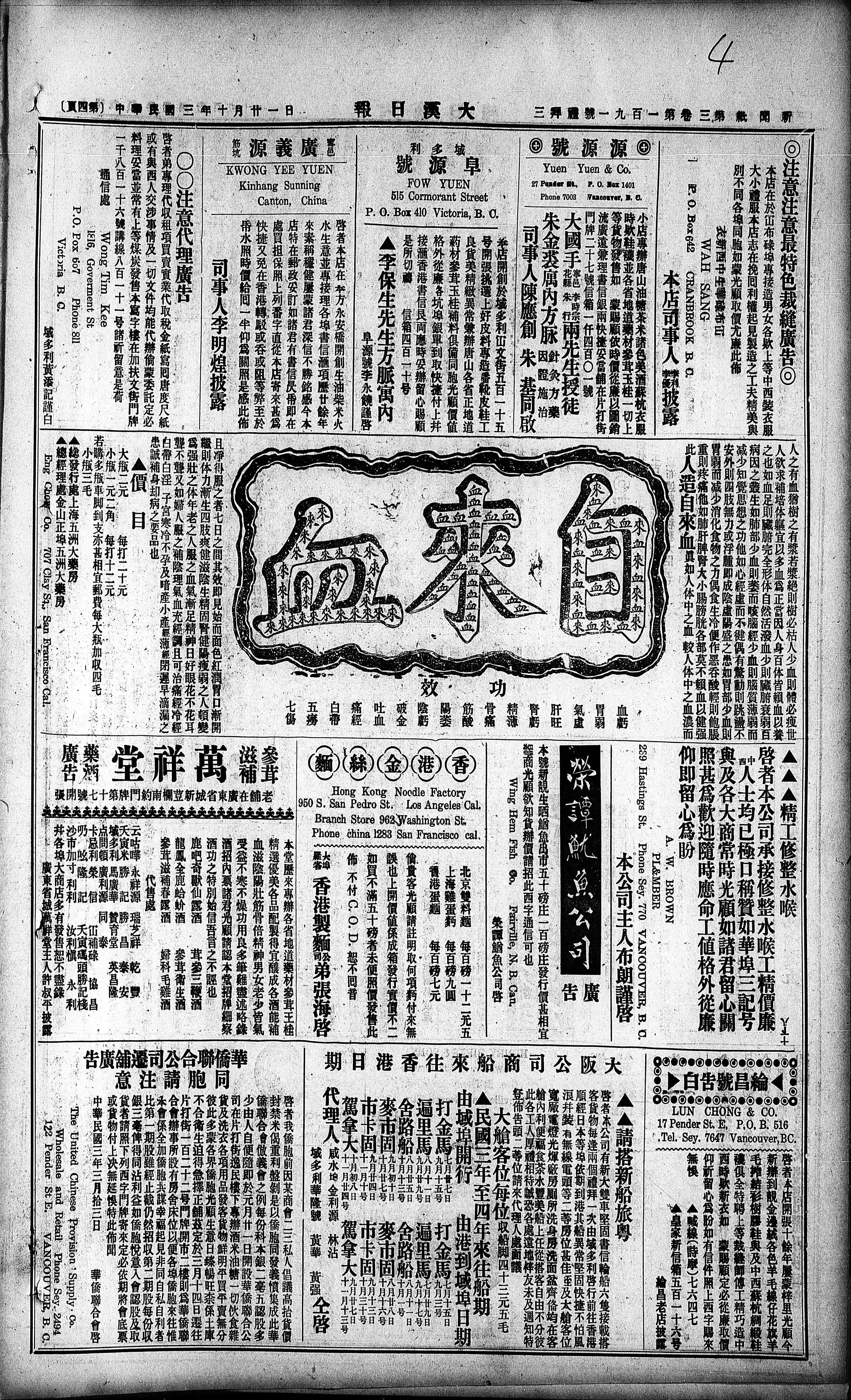 Vancouver, British Columbia : Tai Hon Kong Bo Ltd., 1914; 10 images, 0 avec recherche en texte intégral
