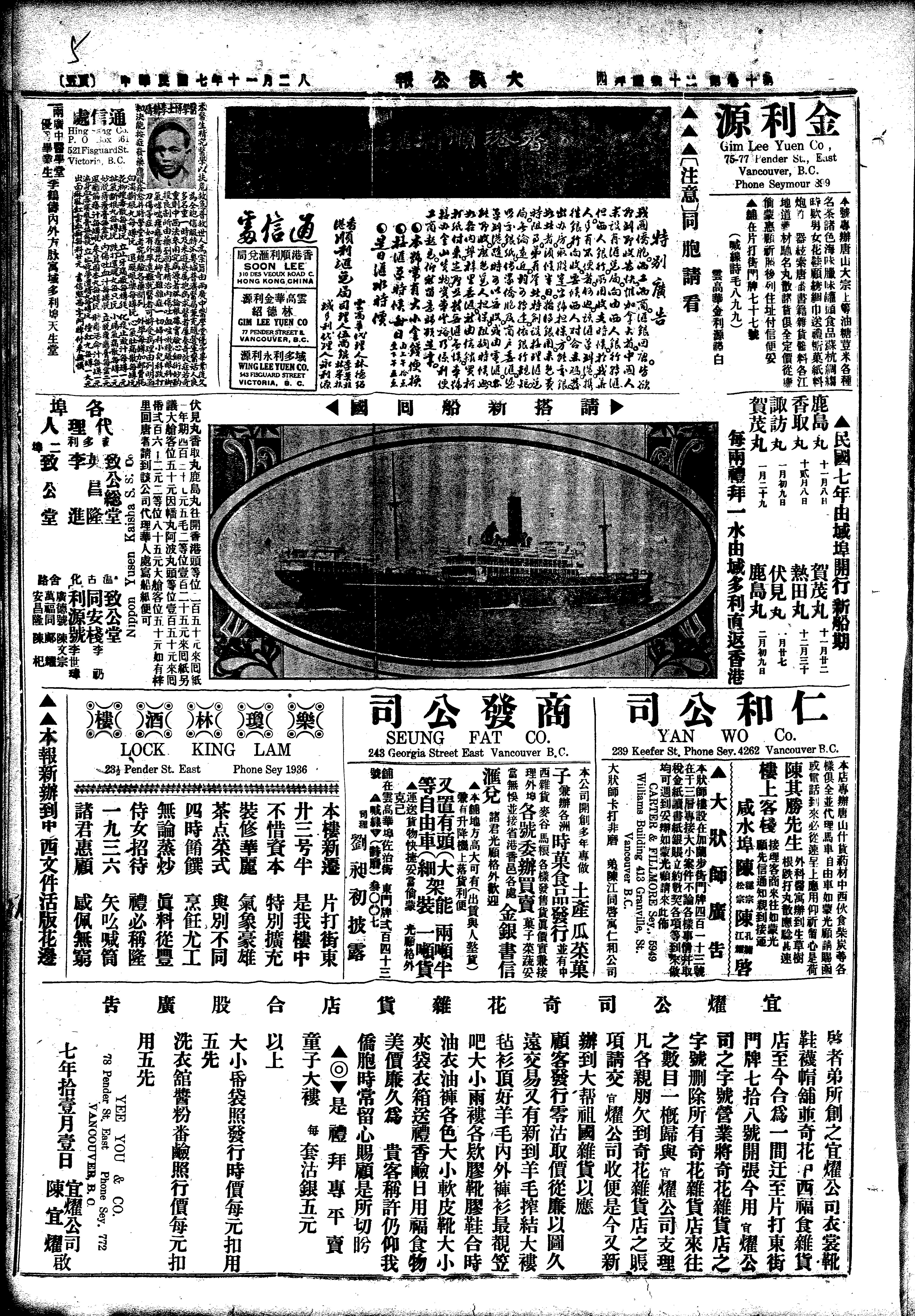 Vancouver, British Columbia : Tai Hon Kong Bo Ltd., 1918; 12 images with full-text search