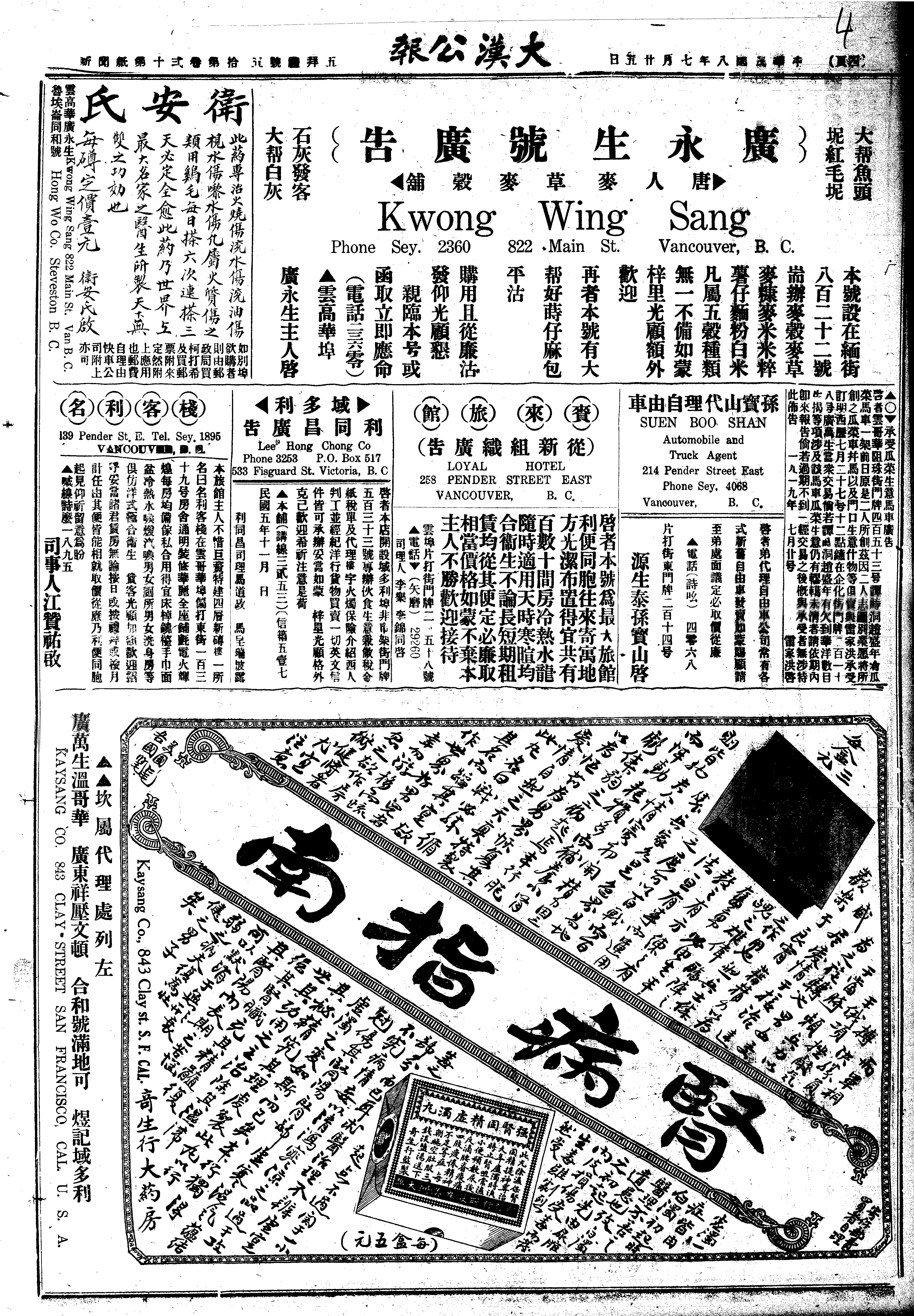 Aide Vancouver, British Columbia : Tai Hon Kong Bo Ltd., 1919; 12 images avec recherche en texte intégral