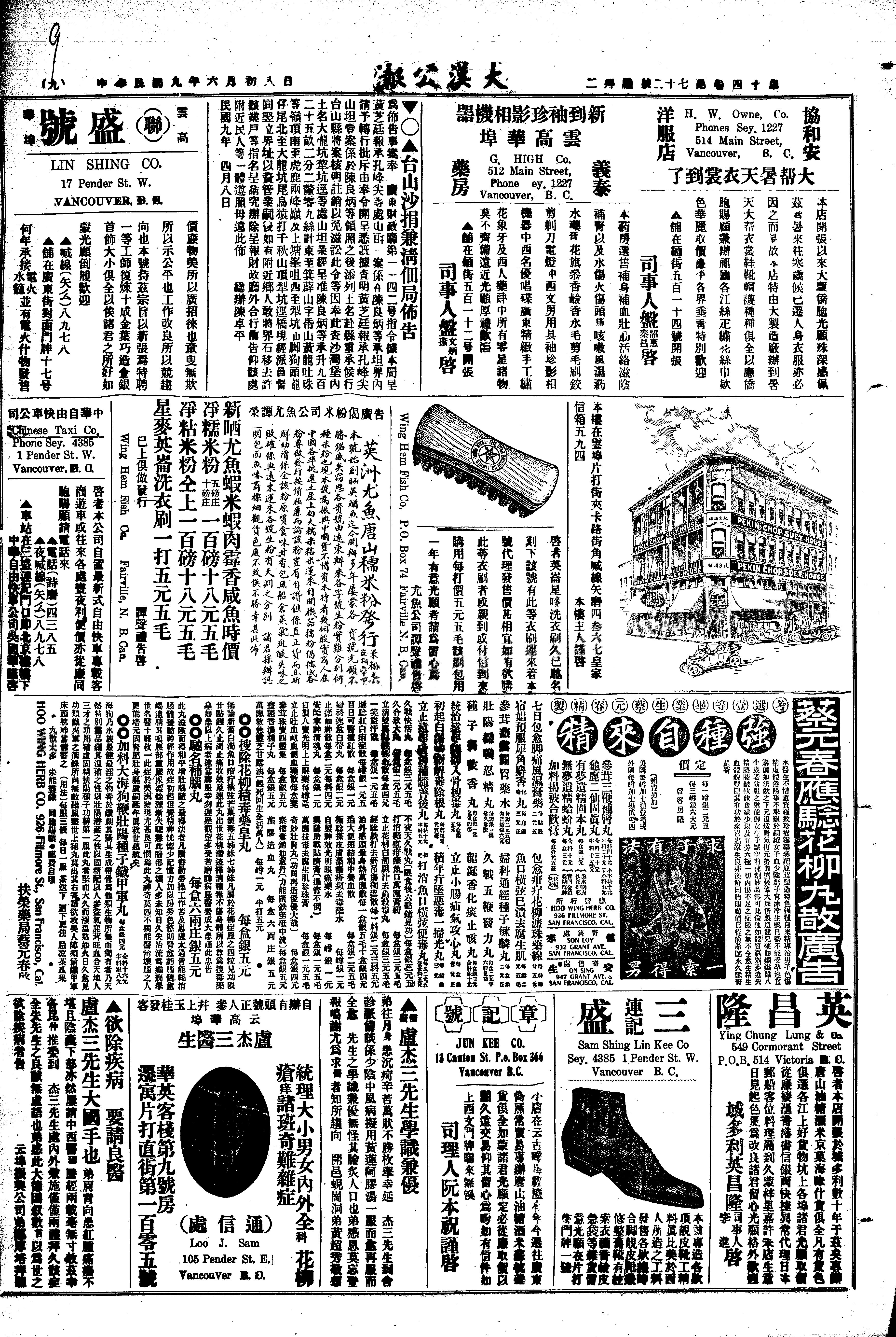 Vancouver, British Columbia : Tai Hon Kong Bo Ltd., 1920; 12 images avec recherche en texte intégral
