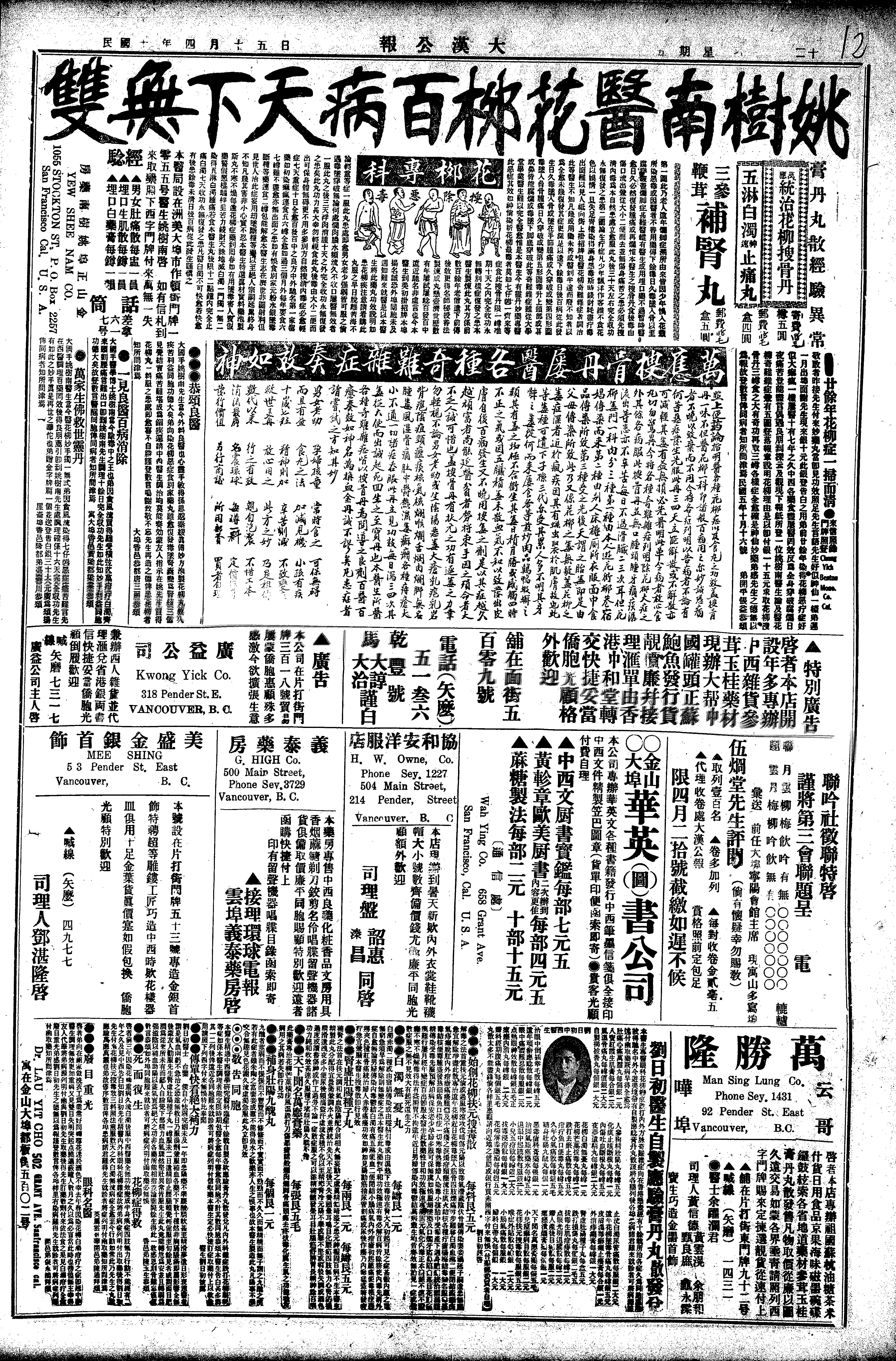 Help Vancouver, British Columbia : Tai Hon Kong Bo Ltd., 1921; 12 images with full-text search