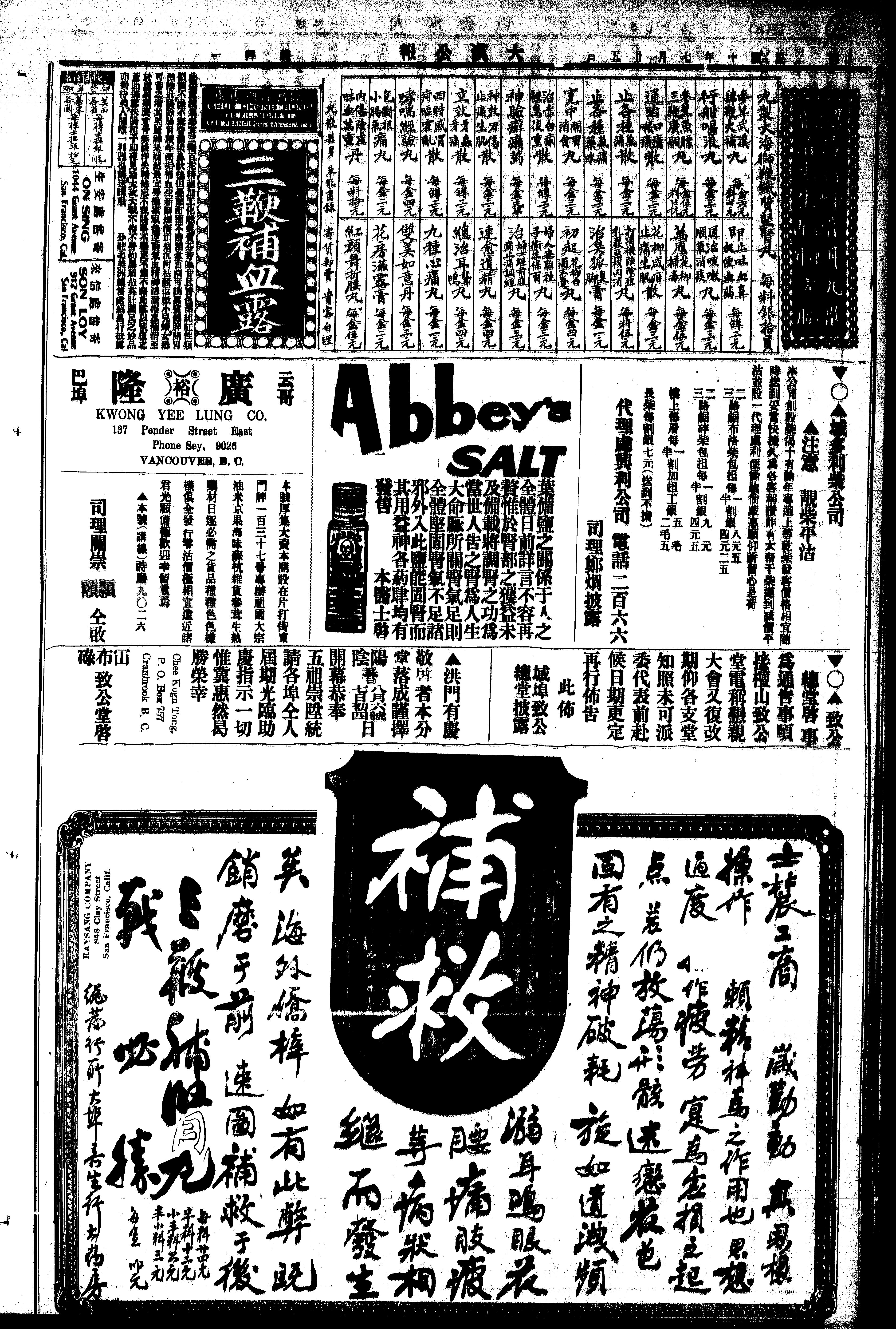 - Vancouver, British Columbia : Tai Hon Kong Bo Ltd., 1921