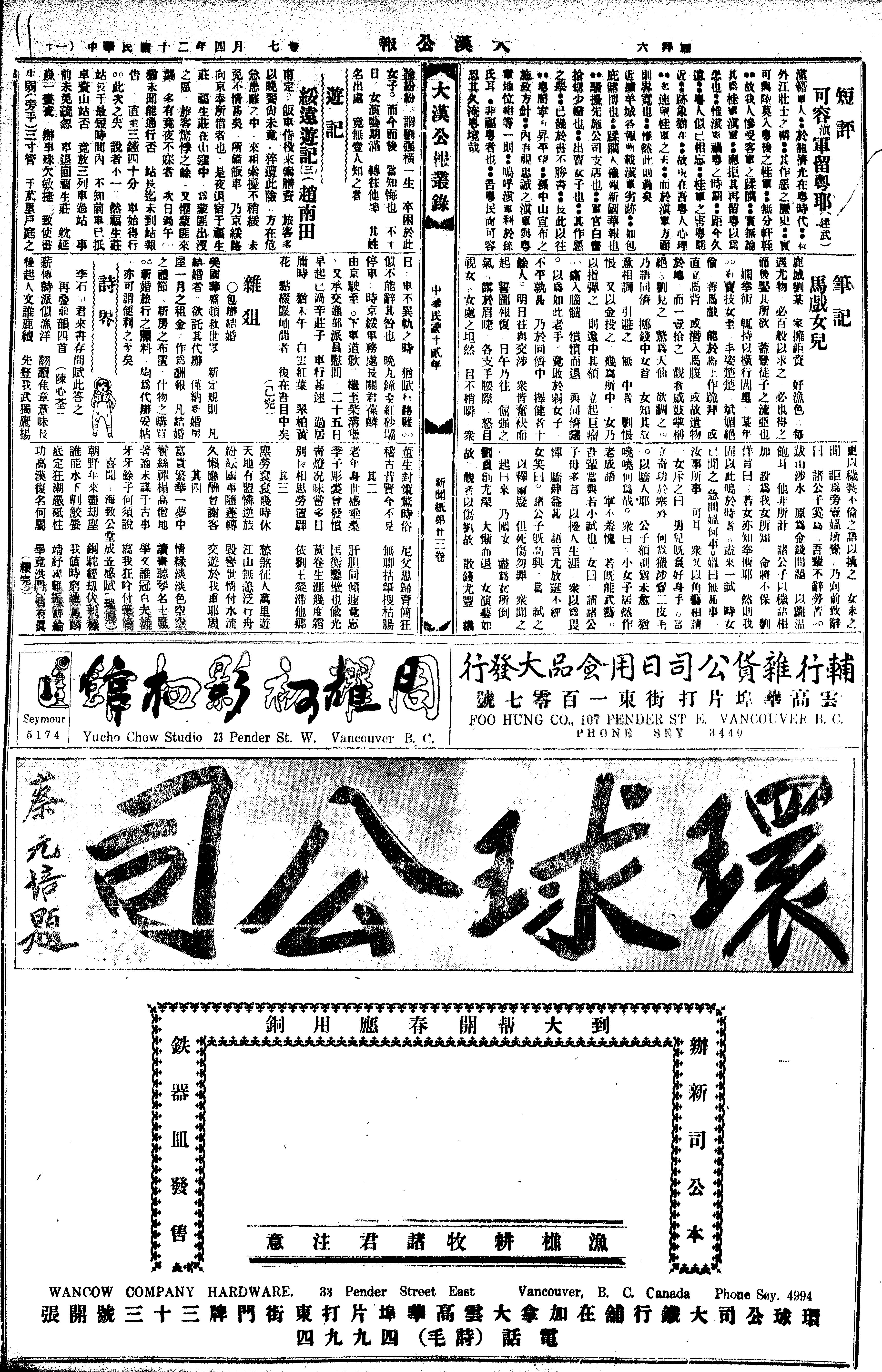 Vancouver, British Columbia : Tai Hon Kong Bo Ltd., 1923; 12 images with full-text search