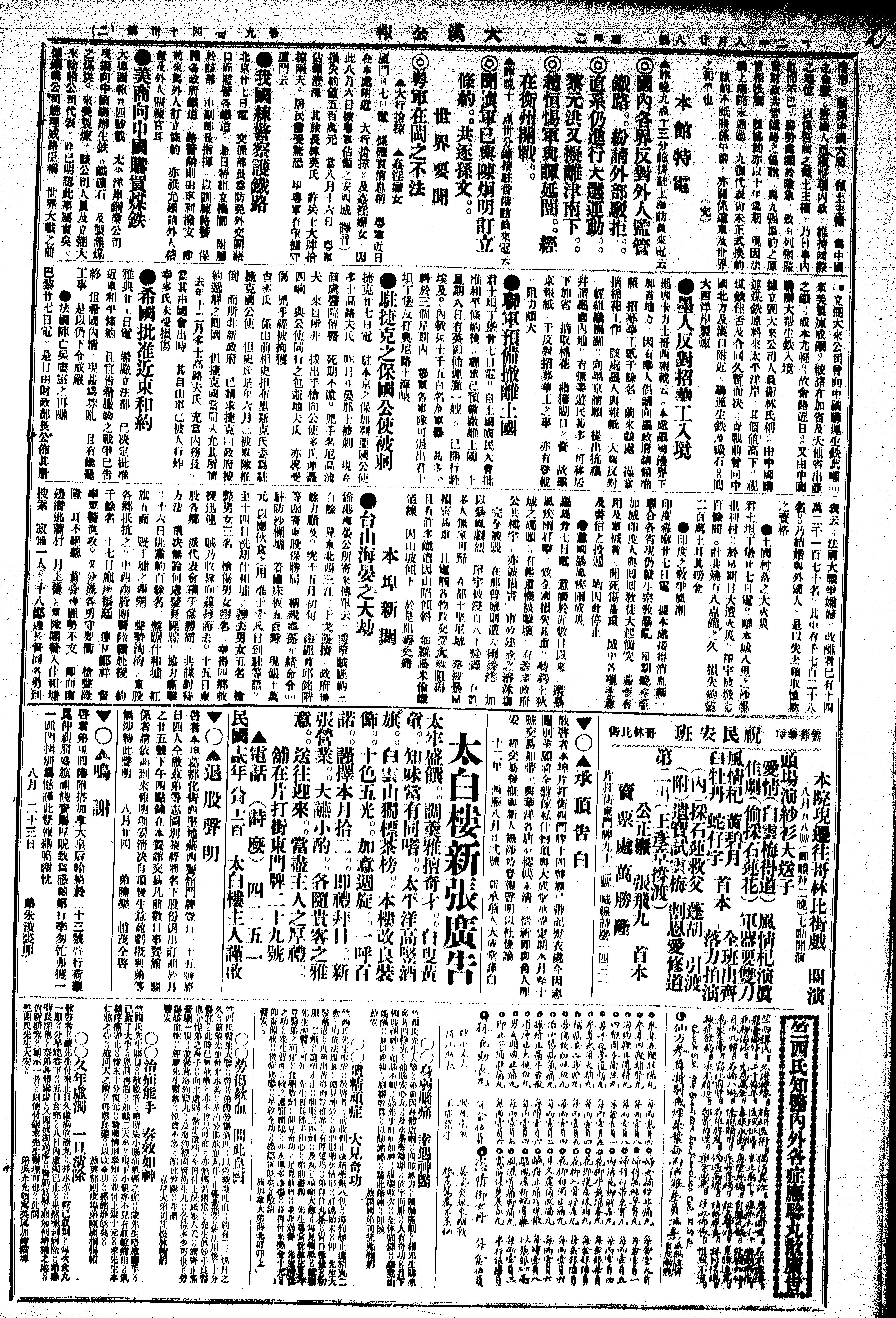 大漢公報 : [一九二三年八月二十八日] - Published