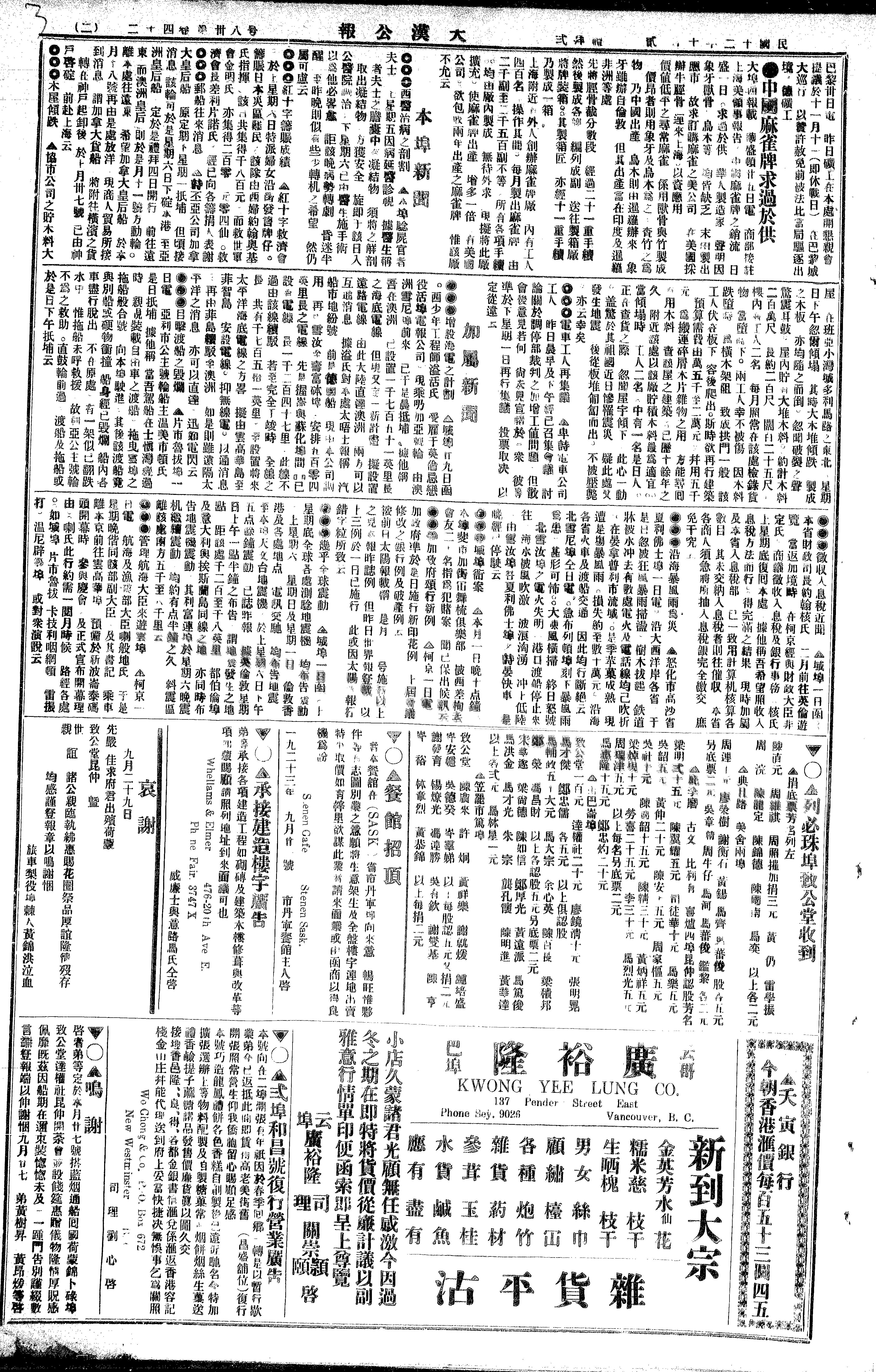 Vancouver, British Columbia : Tai Hon Kong Bo Ltd., 1923; 12 images with full-text search