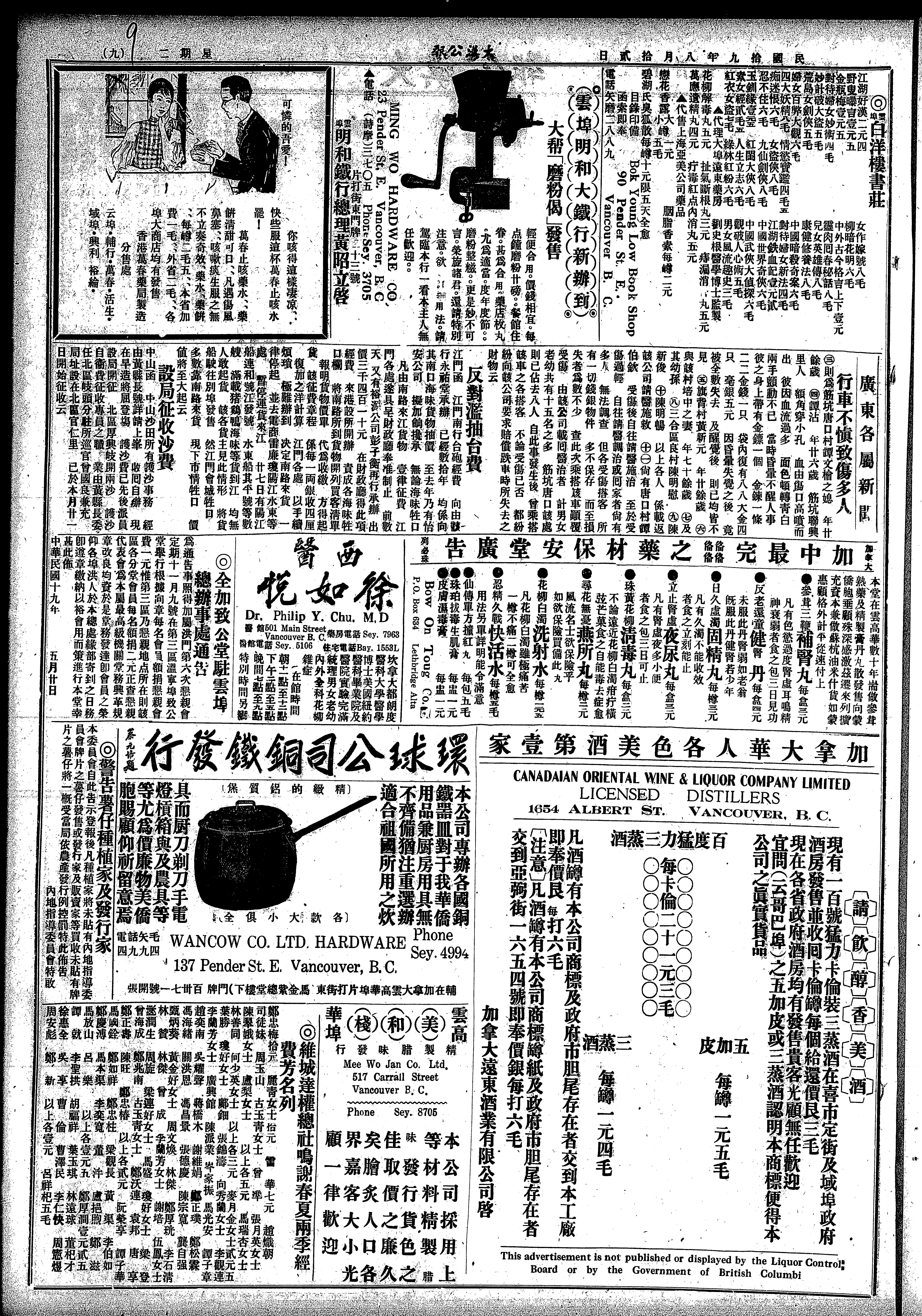 Vancouver, British Columbia : Tai Hon Kong Bo Ltd., 1930; 12 images avec recherche en texte intégral