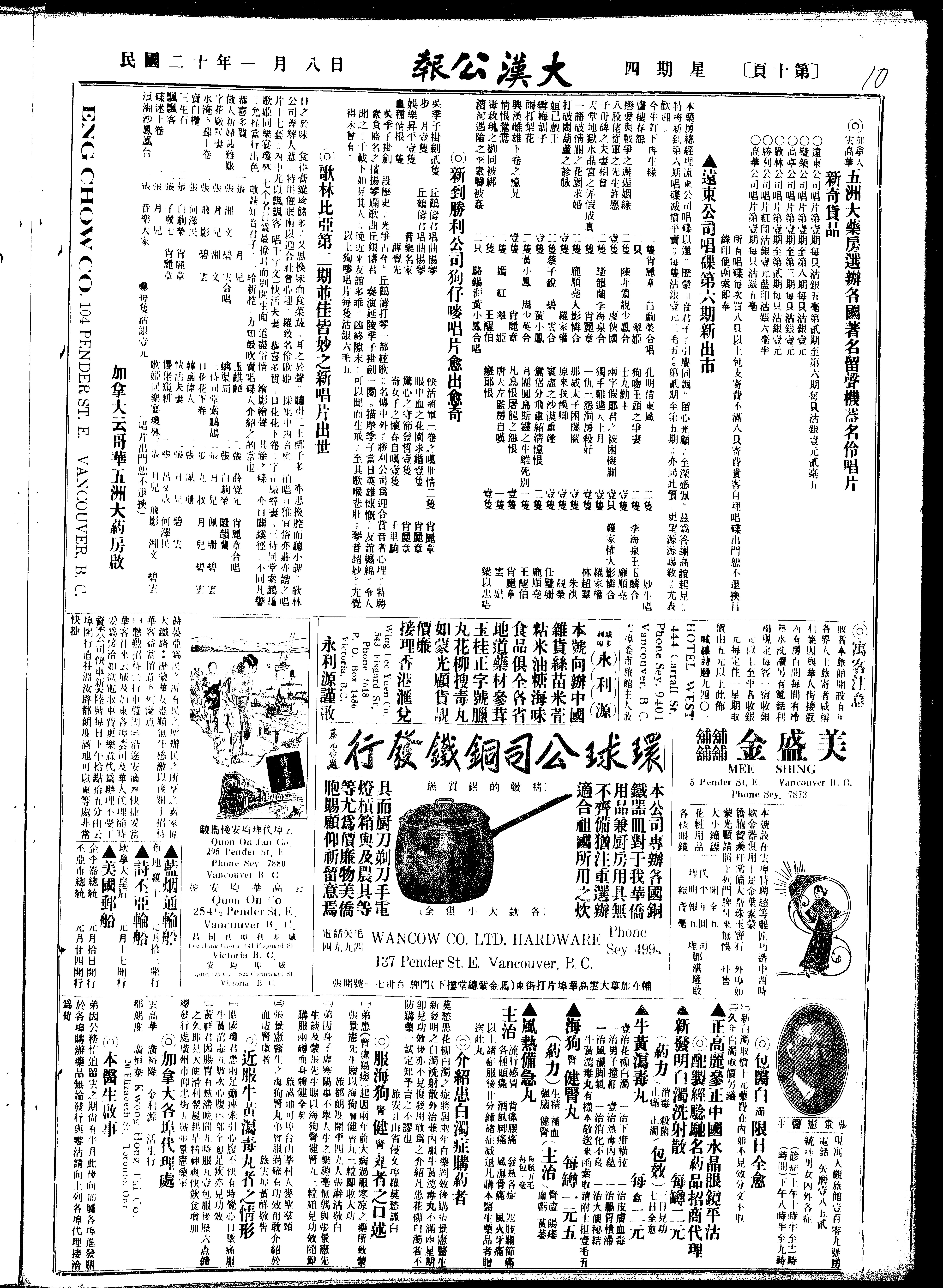 Vancouver, British Columbia : Tai Hon Kong Bo Ltd., 1931; 12 images avec recherche en texte intégral