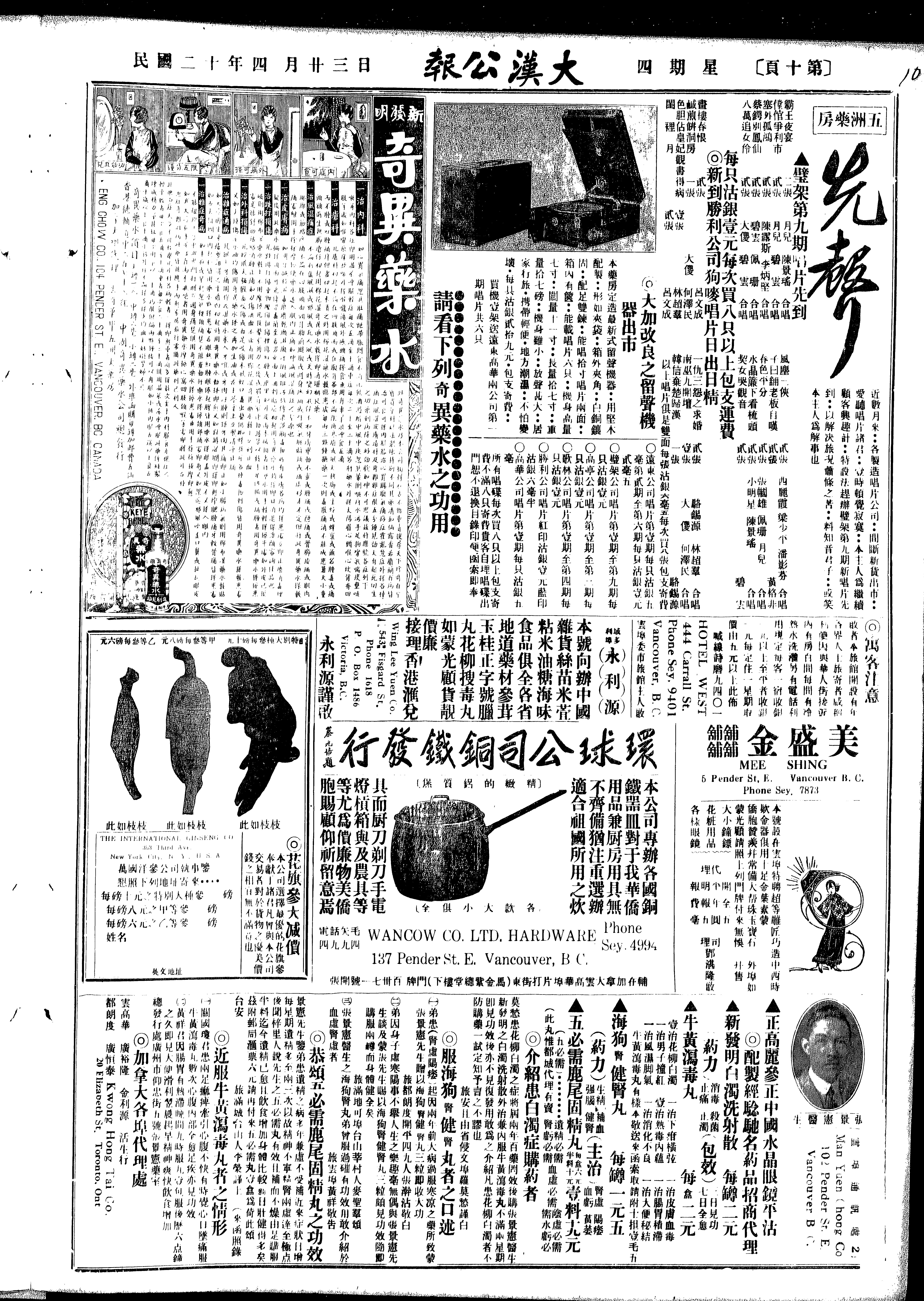 Vancouver, British Columbia : Tai Hon Kong Bo Ltd., 1931; 12 images with full-text search