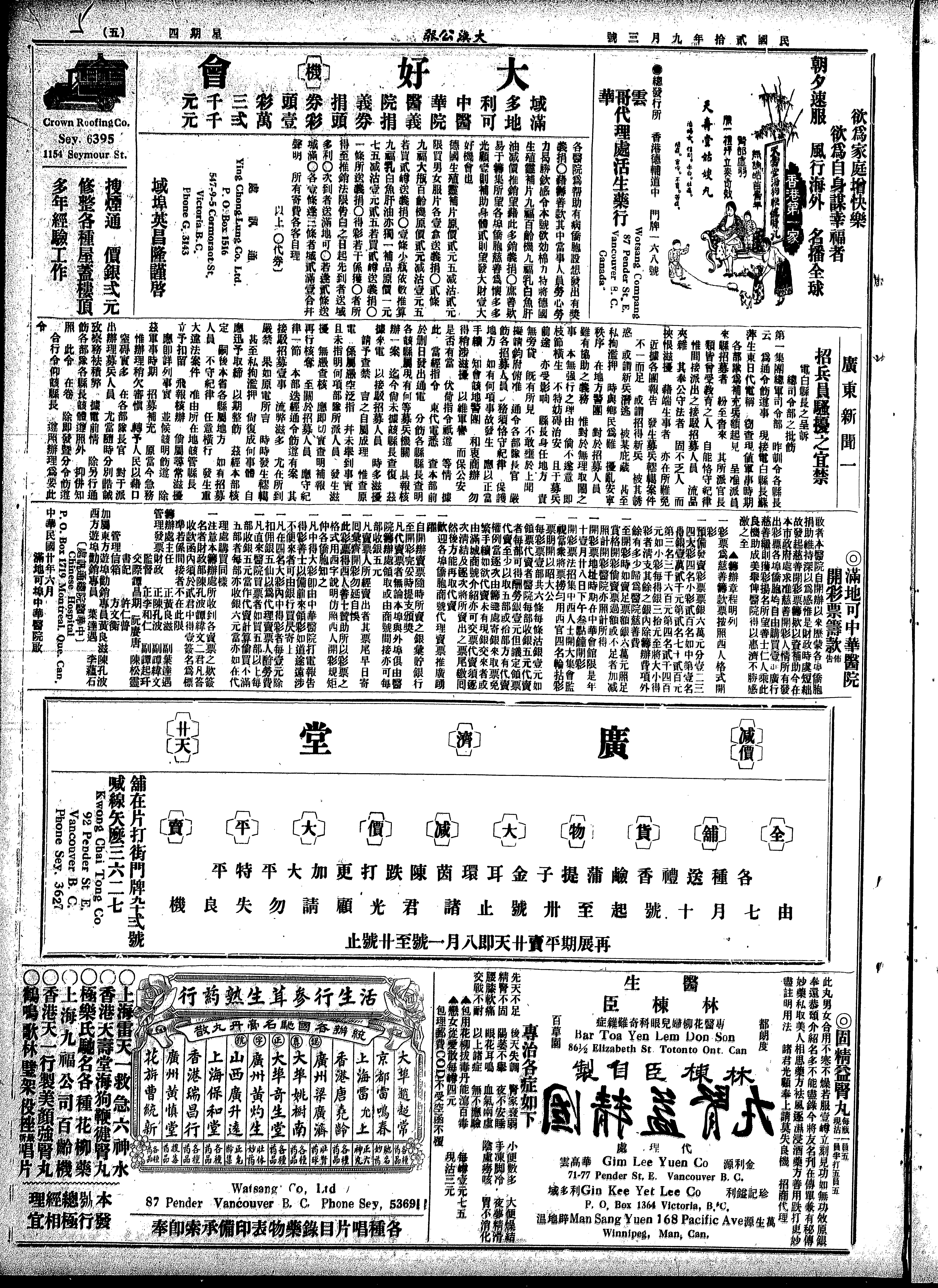 Vancouver, British Columbia : Tai Hon Kong Bo Ltd., 1931; 10 images with full-text search