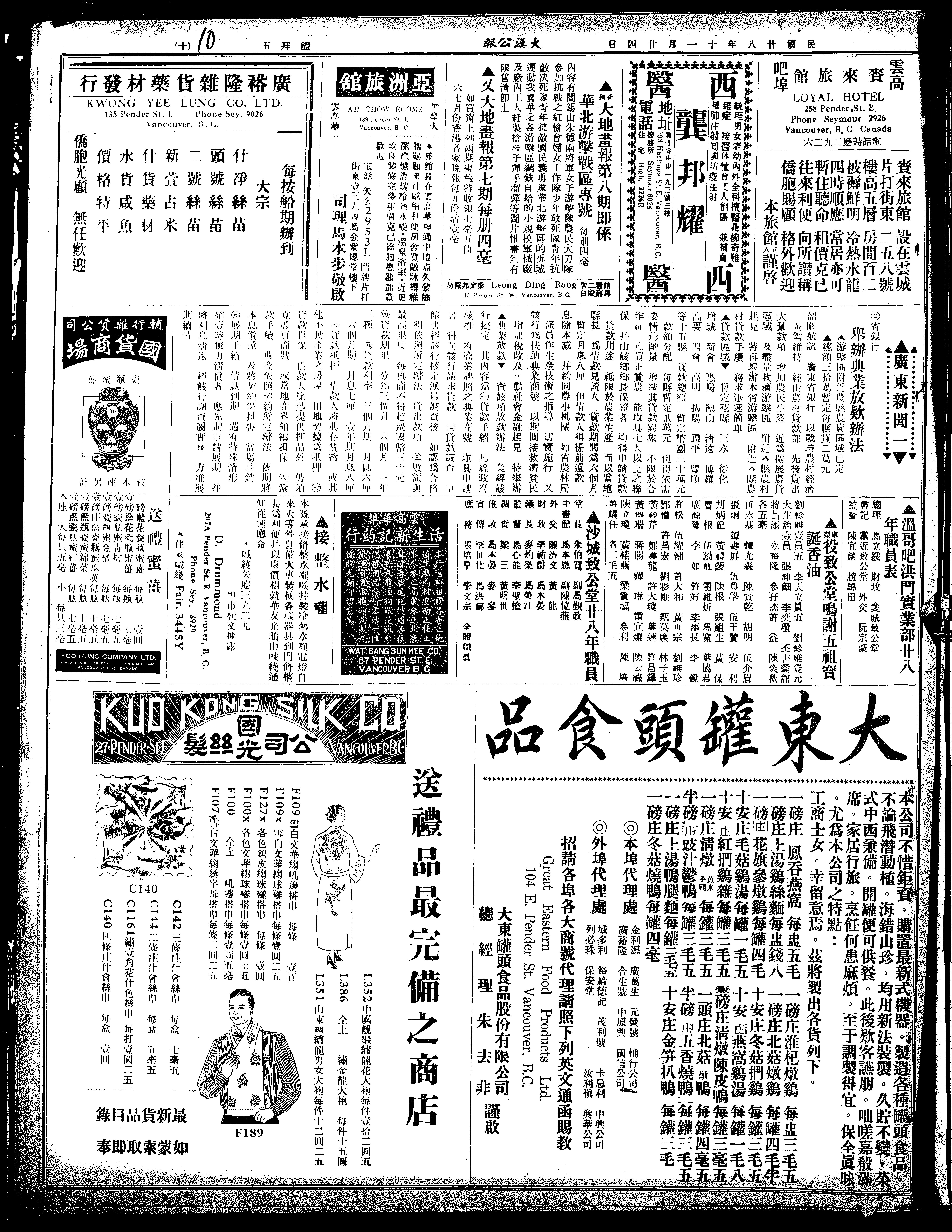 Vancouver, British Columbia : Tai Hon Kong Bo Ltd., 1939; 10 images avec recherche en texte intégral