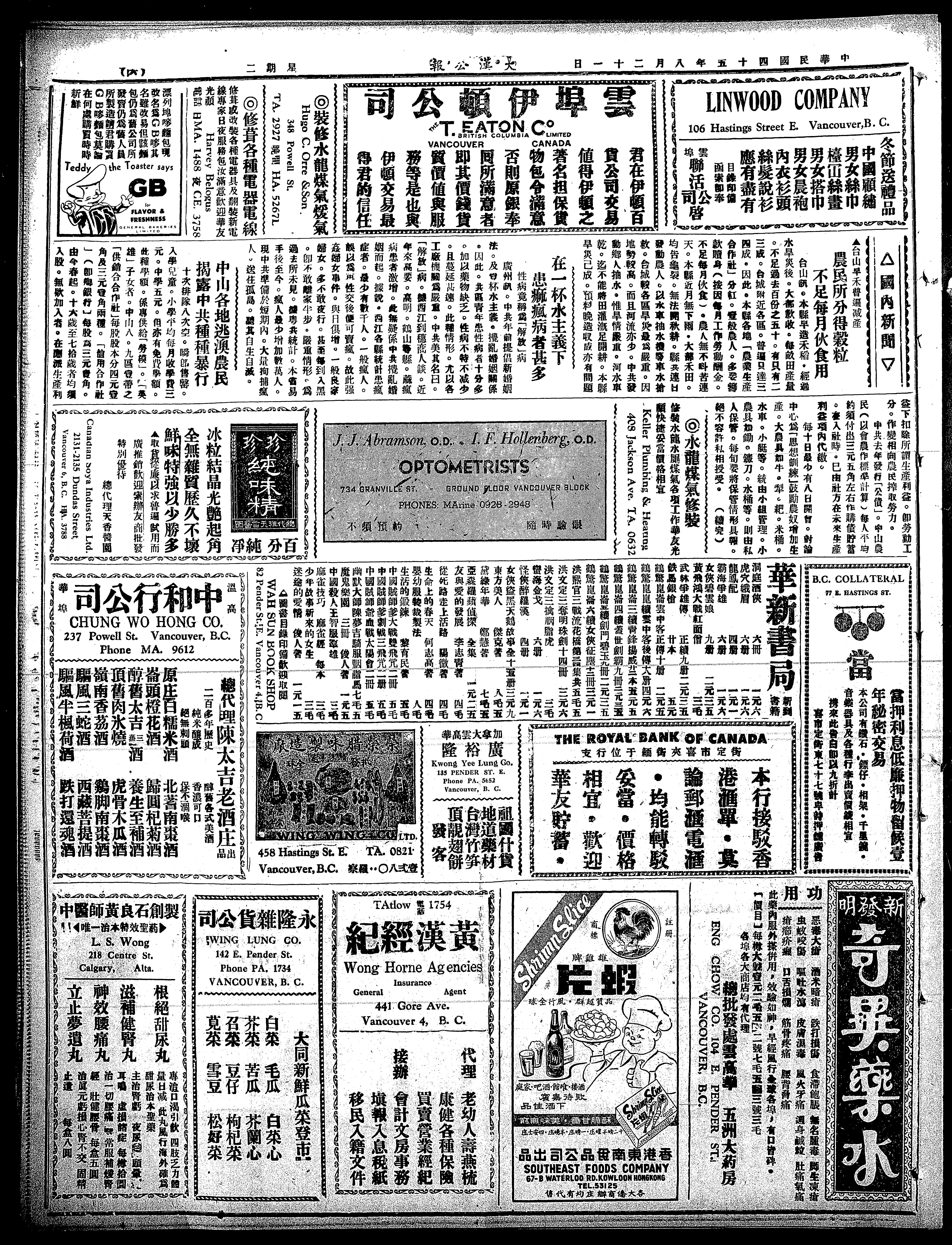 Help Vancouver, British Columbia : Tai Hon Kong Bo Ltd., 1956; 8 images with full-text search